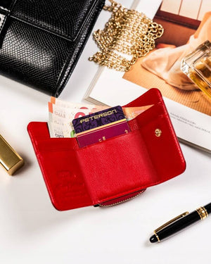 Šis elegantais un kompaktais sieviešu maks no Peterson ir lieliska izvēle tiem, kas novērtē kvalitāti un stilu. Izgatavots no īstas ādas, tas ne tikai izskatās grezni, bet arī ir izturīgs. Sarkanā krāsa piešķir tam izsmalcinātību, un mazais izmērs padara to ērtu nēsāšanai katru dienu. Ar 7 karšu nodalījumiem un atsevišķu nodalījumu monētām šis maks nodrošina, ka viss būs kārtīgi sakārtots.
