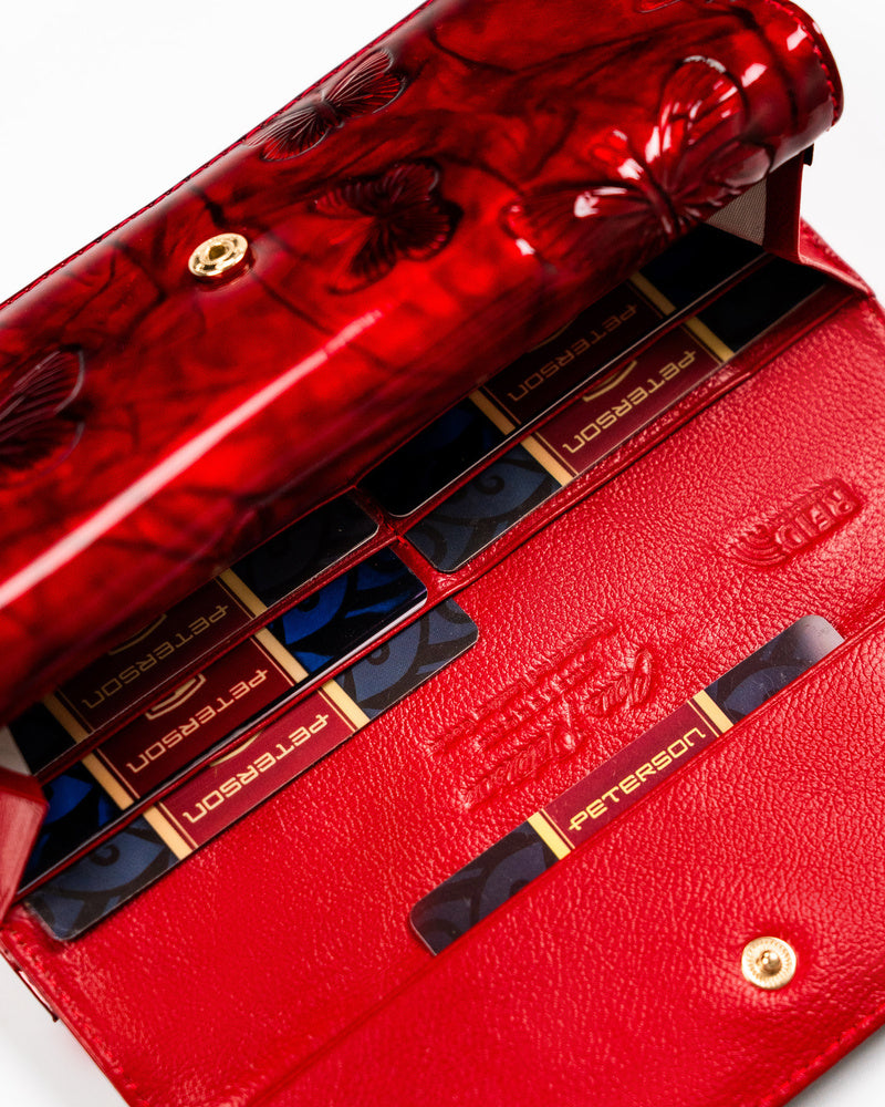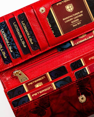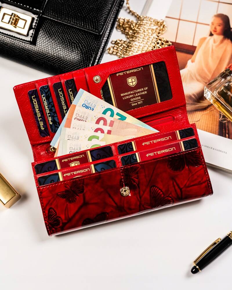 Šis elegantais un funkcionālais sieviešu maks no Peterson ir lieliska izvēle tiem, kas novērtē kvalitāti un stilu. Izgatavots no īstas ādas, tas ne tikai izskatās grezni, bet arī ir izturīgs. Sarkanā krāsa piešķir izsmalcinātību, un lielais izmērs nodrošina, ka viss nepieciešamais atrodas vienuviet.
