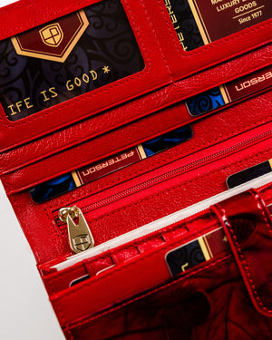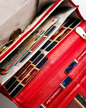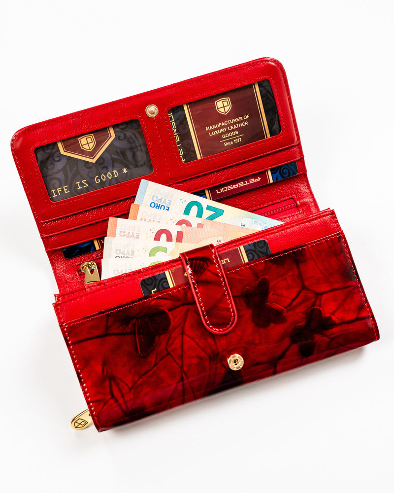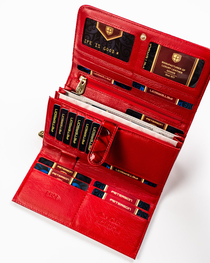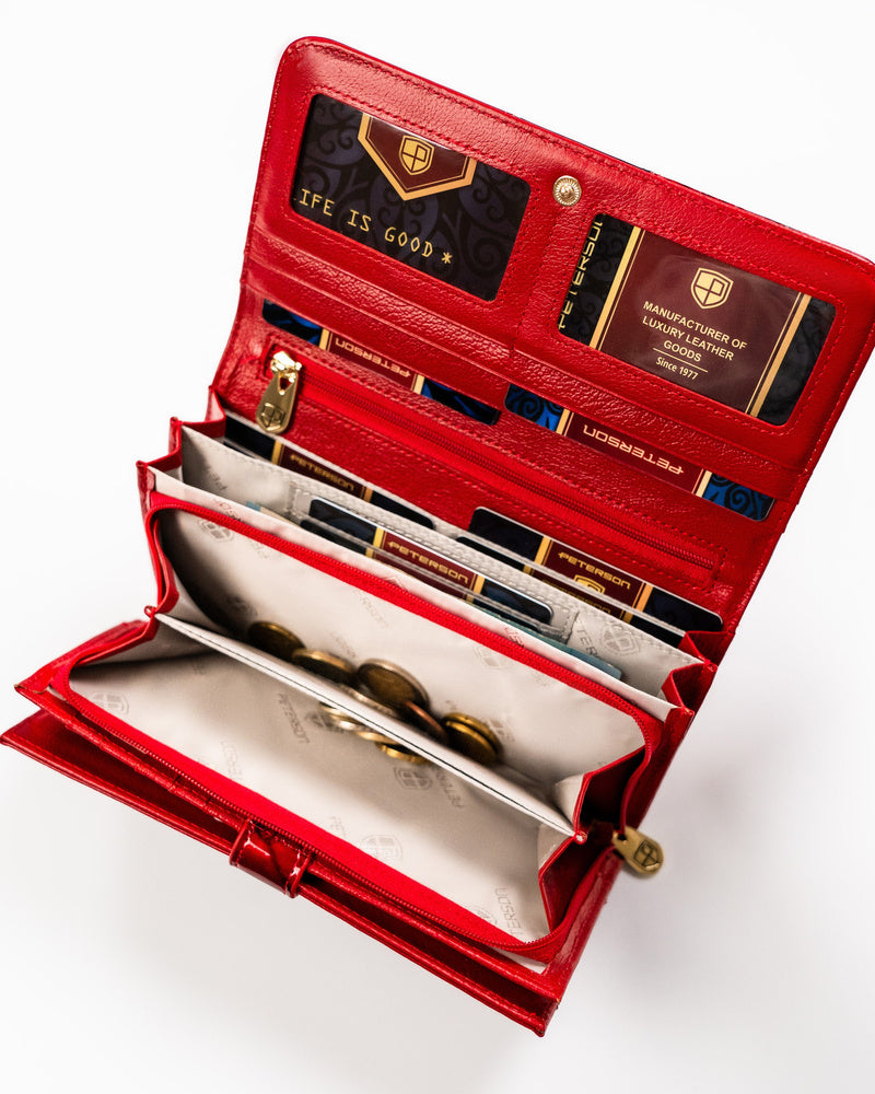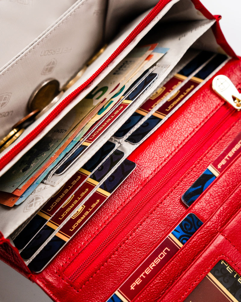 Šis elegantais sieviešu maks no Peterson kolekcijas ir lieliska izvēle tiem, kas novērtē kvalitāti un funkcionalitāti. Izgatavots no īstas ādas, tas ne tikai izskatās grezni, bet arī ir izturīgs. Sarkanā krāsa piešķir ekskluzivitāti, un lielais izmērs nodrošina, ka viss nepieciešamais atrodas vienuviet.