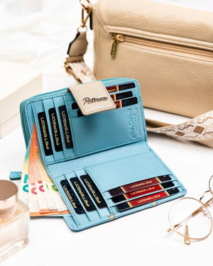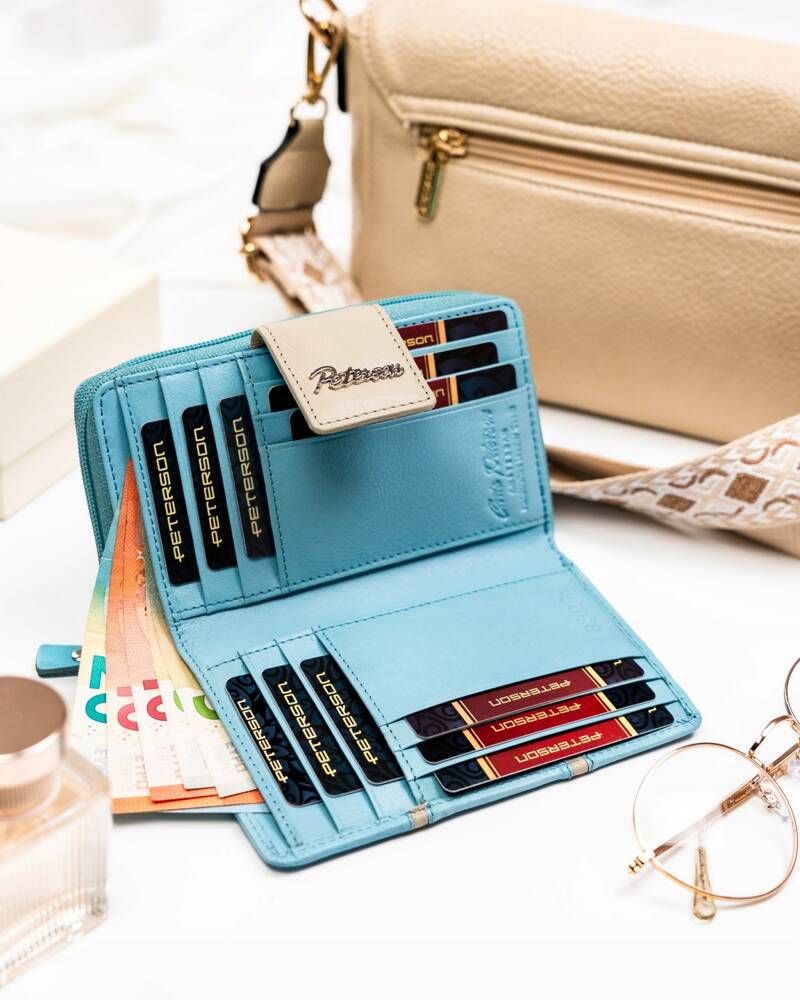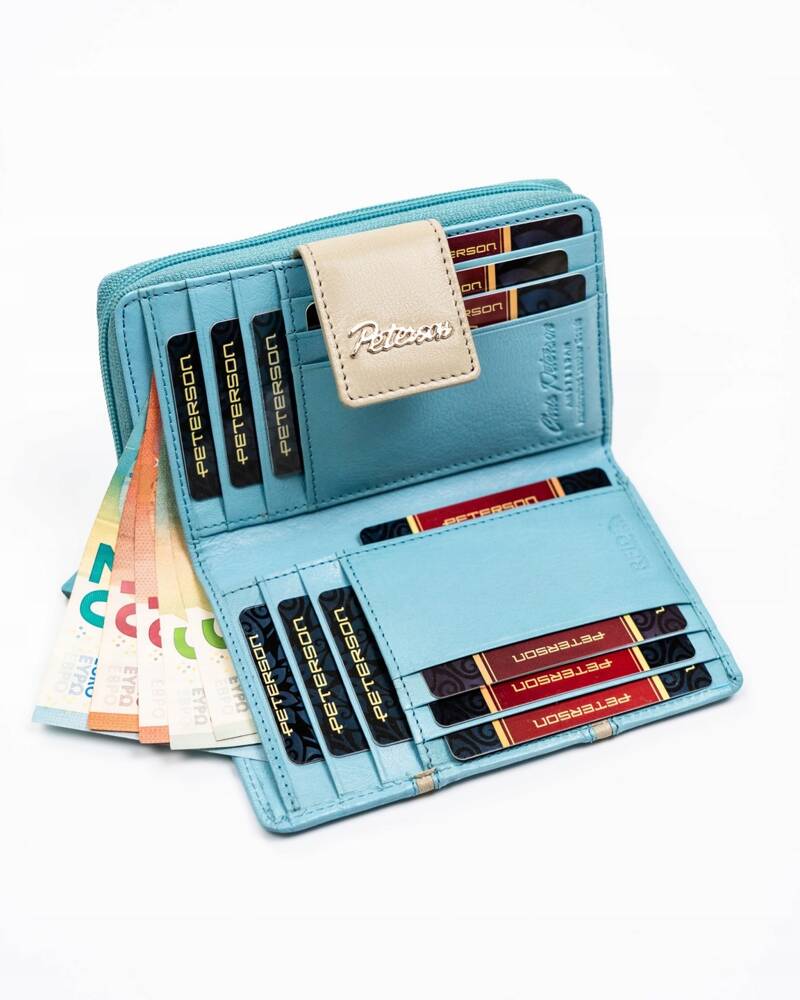 Šis elegantais sieviešu maks no Peterson kolekcijas ir izgatavots no augstas kvalitātes īstas ādas. Tā zilā krāsa piešķir tam atšķirīgu izskatu, un vidējais izmērs nodrošina ērtības ikdienas lietošanā. Makam ir 6-10 karšu nodalījumi un atsevišķs nodalījums monētām, padarot to ideāli piemērotu gan ikdienas vajadzībām, gan īpašiem gadījumiem.