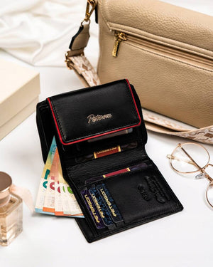 Šis elegantais sieviešu maks, kas izgatavots no īstas ādas, ir lieliska izvēle tiem, kas novērtē kvalitāti un stilu. Kompaktais izmērs ļauj ērti uzglabāt maku rokassomiņā, savukārt melnā krāsa piešķir daudzpusību un eleganci. Makam ir 1-5 karšu nodalījumi, bet nav nodalījuma monētām. Šis ir lielisks aksesuārs, kas atbilst mūsdienu sievietes vajadzībām.