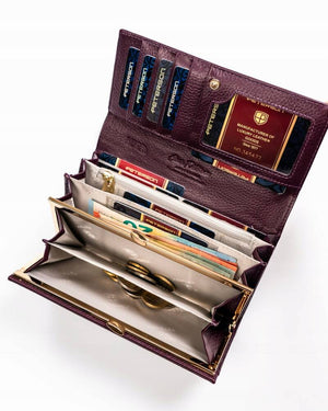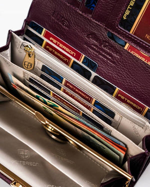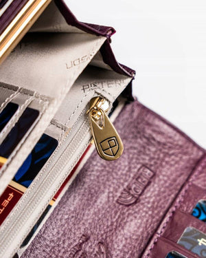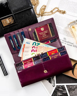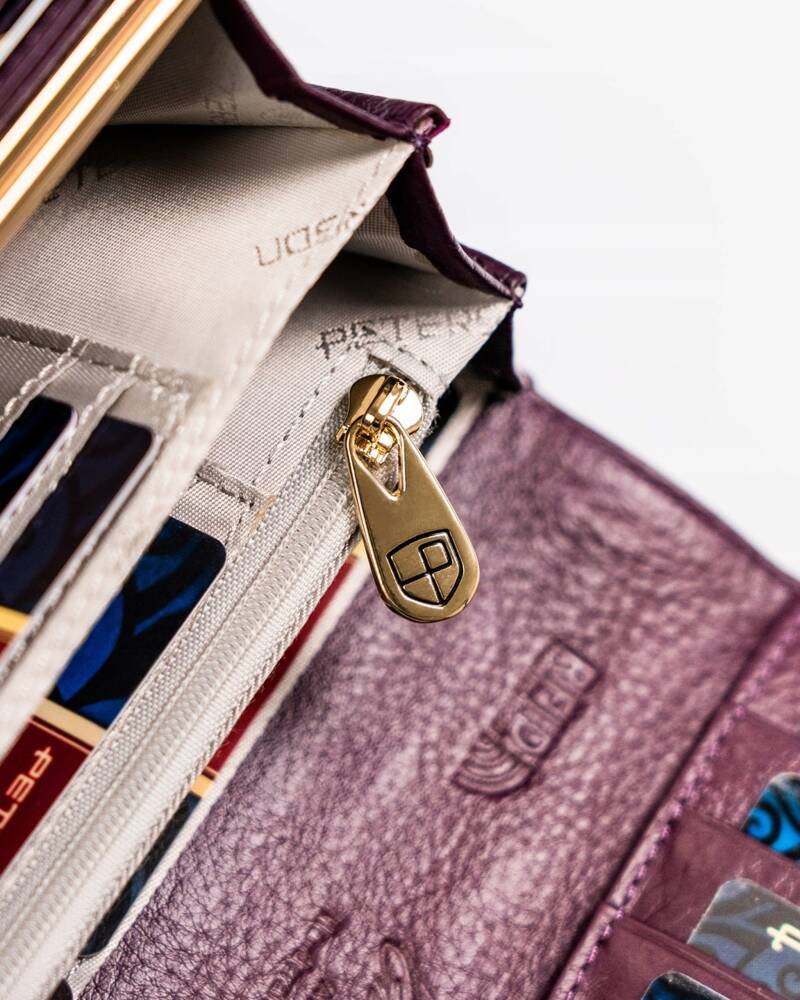 Šis elegantais sieviešu maks, kas izgatavots no īstas ādas, ir lieliska izvēle tiem, kas novērtē kvalitāti un funkcionalitāti. Ar vairāk nekā 15 karšu nodalījumiem un atsevišķu nodalījumu monētām tas nodrošina ērtu un organizētu priekšmetu glabāšanu. Pateicoties lielajam izmēram un izteiksmīgajai vijoles krāsai, šis maks kļūs par stilīgu aksesuāru jūsu ikdienā.