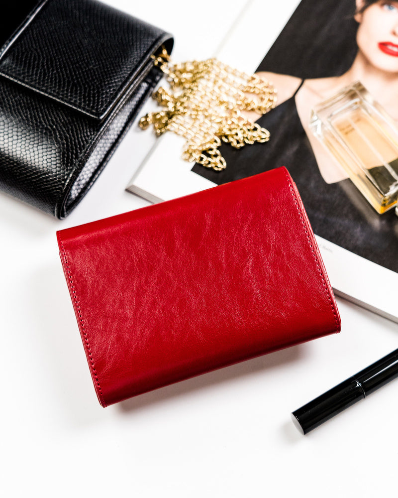 Šis elegantais sieviešu maks, kas izgatavots no īstas ādas, ir lieliska izvēle tiem, kas meklē kvalitāti un stilu. Sarkanā krāsa piešķir tam izsmalcinātību, un vidējais izmērs nodrošina ērtības ikdienas lietošanā. Makā ir pietiekami daudz vietas kartēm un monētām, padarot to ideāli piemērotu gan ikdienas lietošanai, gan īpašiem gadījumiem.