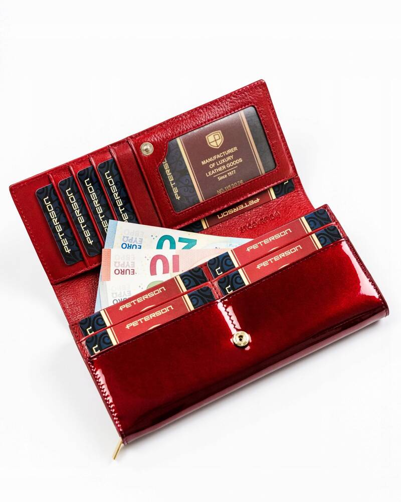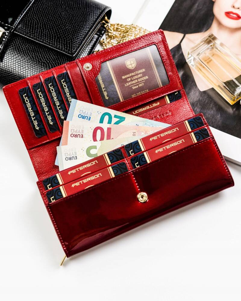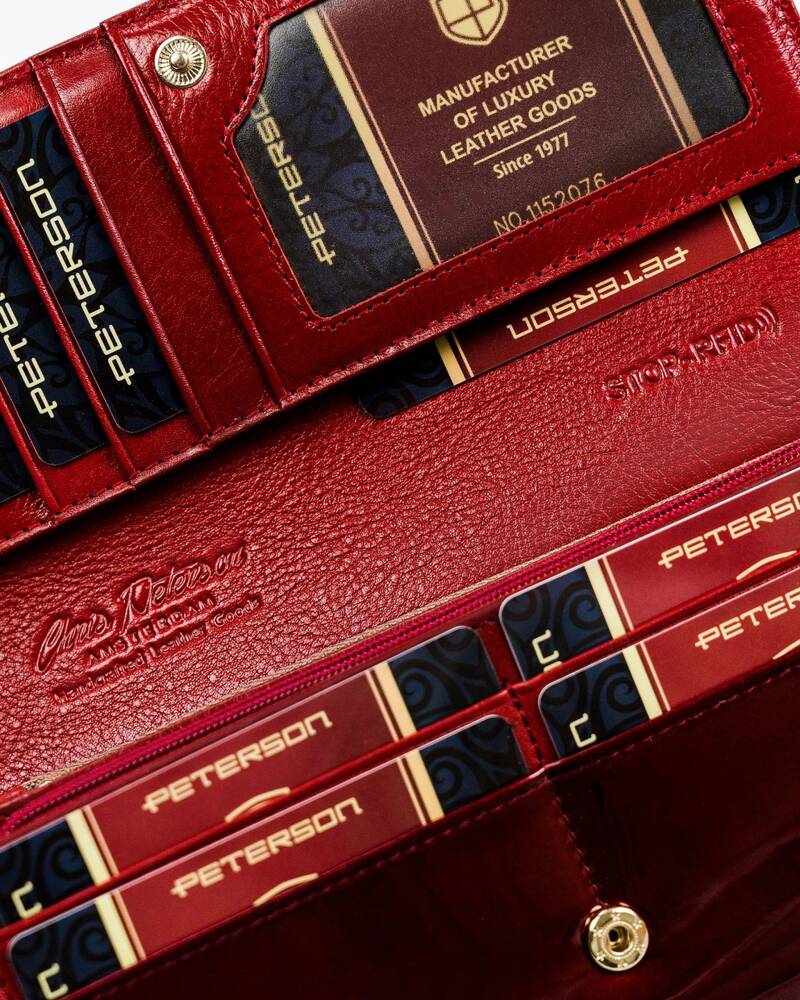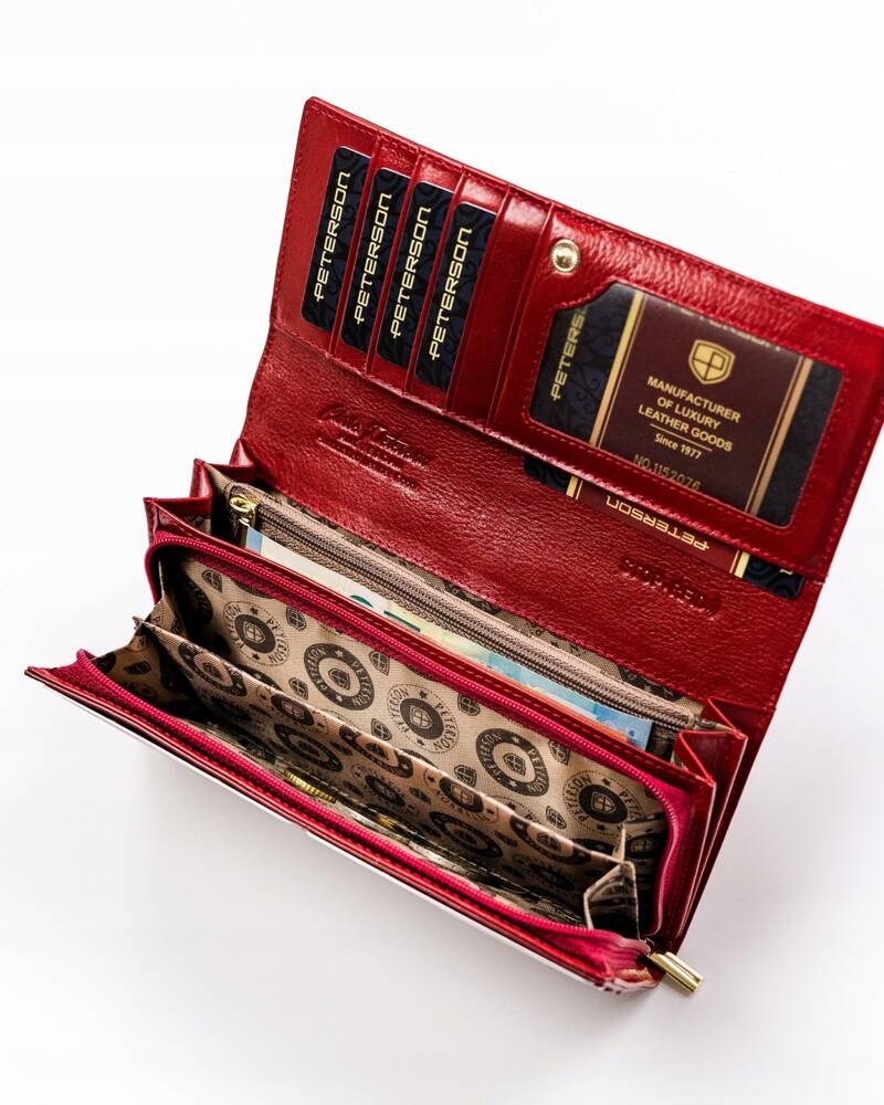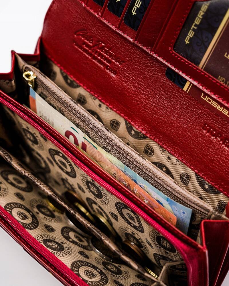 Šis elegantais un funkcionālais sieviešu maks no Peterson ir lieliska izvēle tiem, kas novērtē kvalitāti un stilu. Izgatavots no īstas ādas, tas ne tikai izskatās grezni, bet arī ir izturīgs. Sarkanā krāsa piešķir izsmalcinātību, un lielais izmērs nodrošina, ka viss nepieciešamais atrodas vienuviet.
