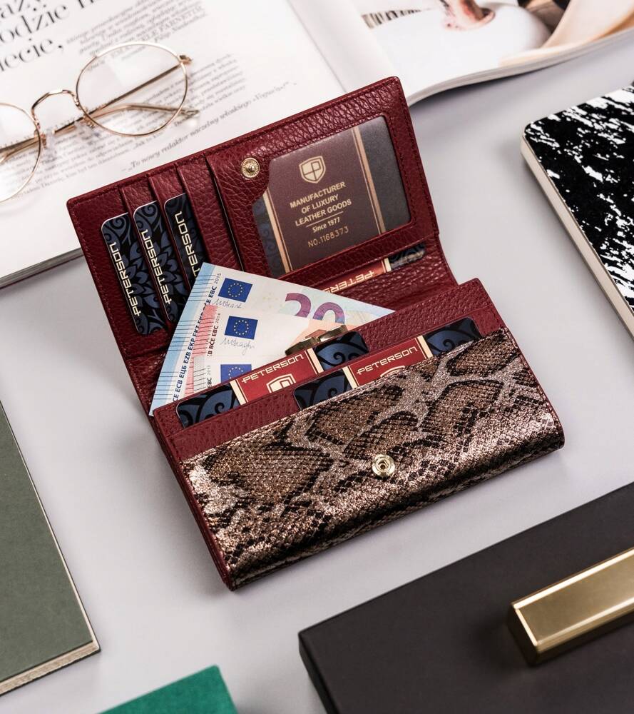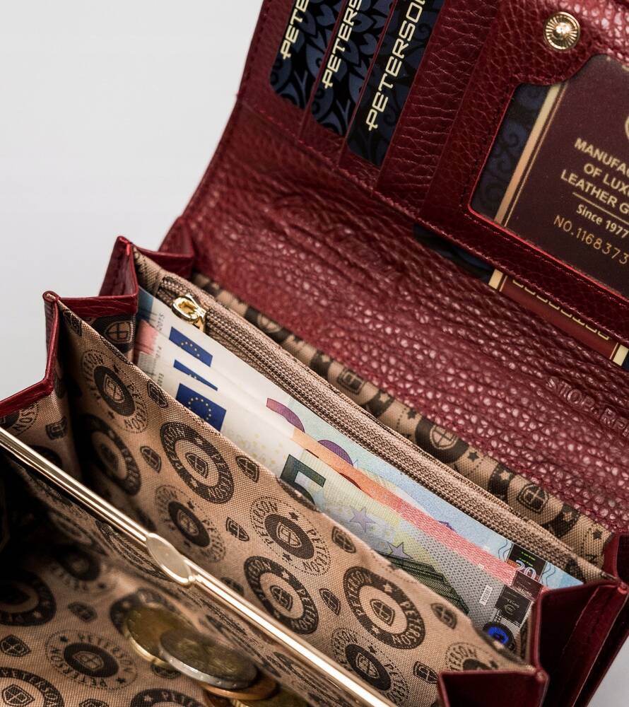 Šis elegantais sieviešu maks no Peterson kolekcijas ir izgatavots no augstas kvalitātes īstas ādas. Sarkanā krāsa piešķir tam ekskluzivitāti un stilu, un lielais izmērs nodrošina, ka jums ir pietiekami daudz vietas visām nepieciešamajām lietām. Makam ir 1-5 karšu nodalījumi un atsevišķs nodalījums monētām, padarot to praktisku un ērtu ikdienas lietošanai.