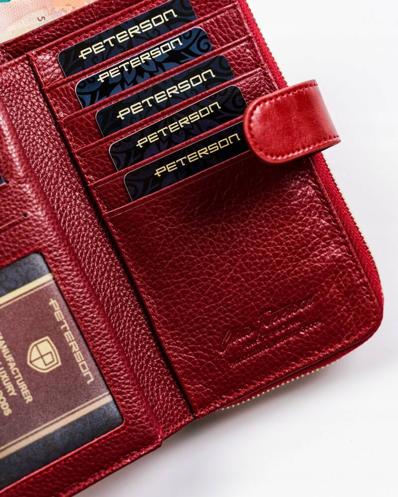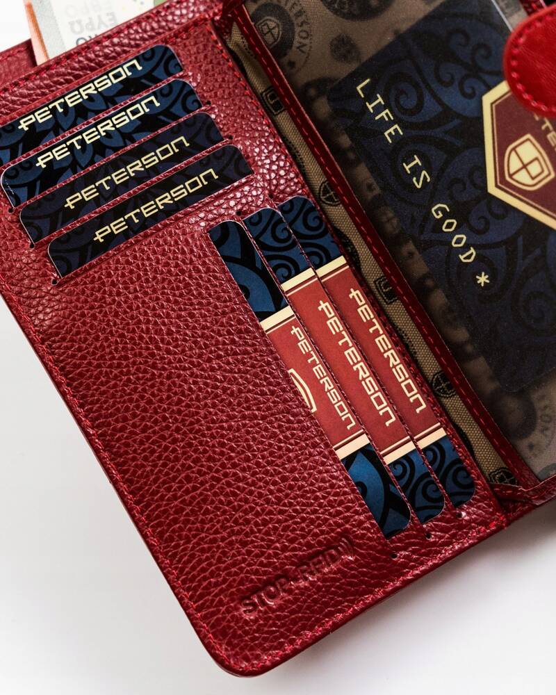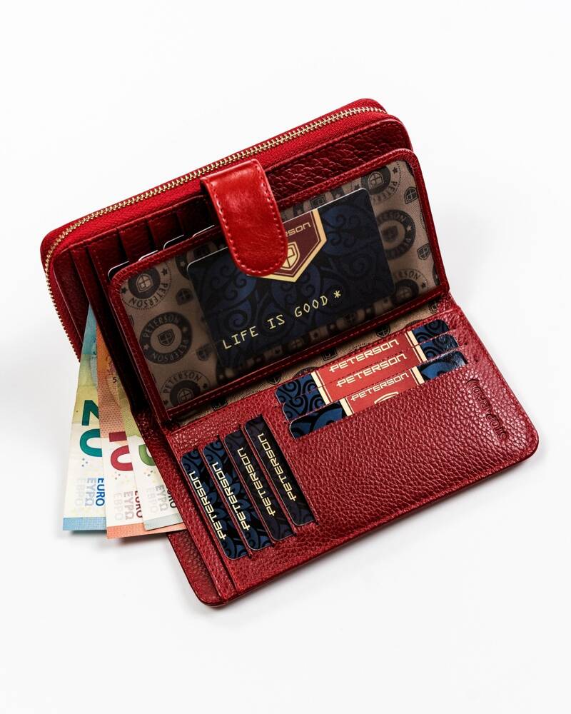 Šis elegantais un funkcionālais sieviešu maks no Peterson ir lieliska izvēle tiem, kas novērtē kvalitāti un stilu. Izgatavots no īstas ādas, tas ne tikai izskatās grezni, bet arī ir izturīgs. Sarkanā krāsa piešķir izsmalcinātību, un lielais izmērs nodrošina, ka viss nepieciešamais atrodas vienuviet.