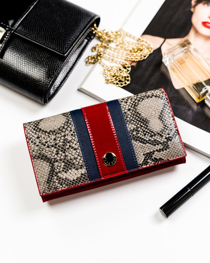 Šis elegantais sieviešu maks no Peterson kolekcijas ir izgatavots no augstas kvalitātes īstas ādas. Spilgti sarkanā krāsa piešķir tam izsmalcinātību, un lielais izmērs nodrošina pietiekami daudz vietas visām nepieciešamajām lietām. Makam ir nodalījumi 1-5 kartēm un atsevišķs nodalījums monētām, padarot to praktisku un ērtu ikdienas lietošanai.