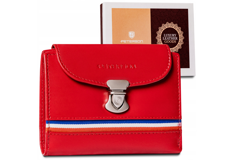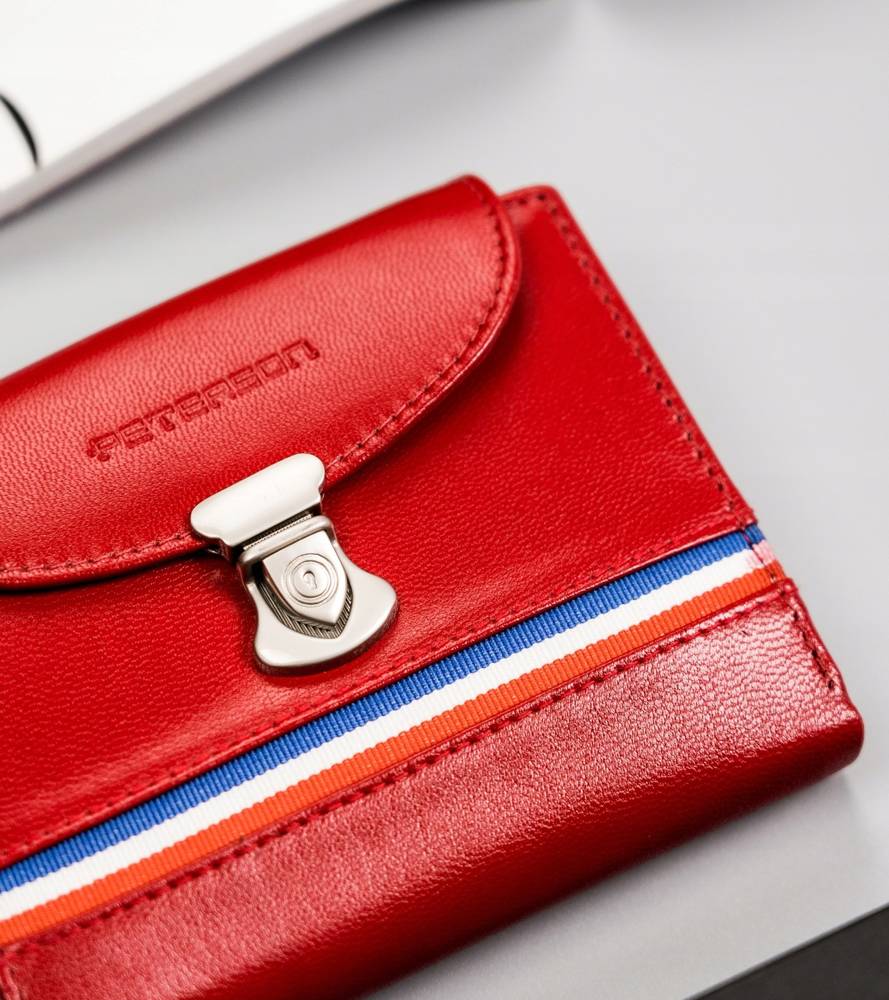 Šis elegantais sieviešu maks no Peterson kolekcijas ir izgatavots no augstas kvalitātes īstas ādas. Sarkanā krāsa piešķir ekskluzivitāti un stilu, savukārt vidējais izmērs nodrošina ērtības ikdienas lietošanā. Makā ir pietiekami daudz vietas kartēm un monētām, padarot to ideāli piemērotu gan ikdienas lietošanai, gan īpašiem gadījumiem.
