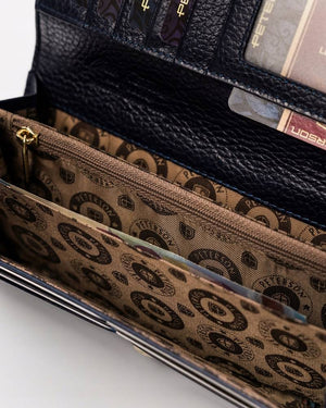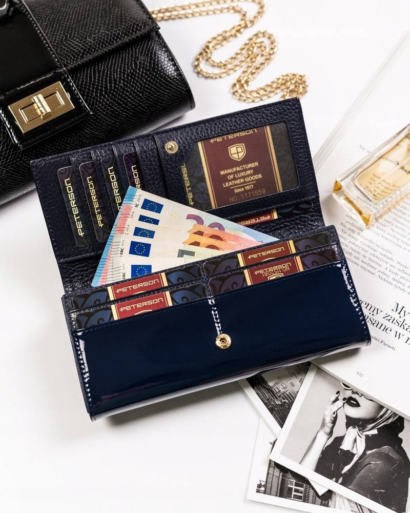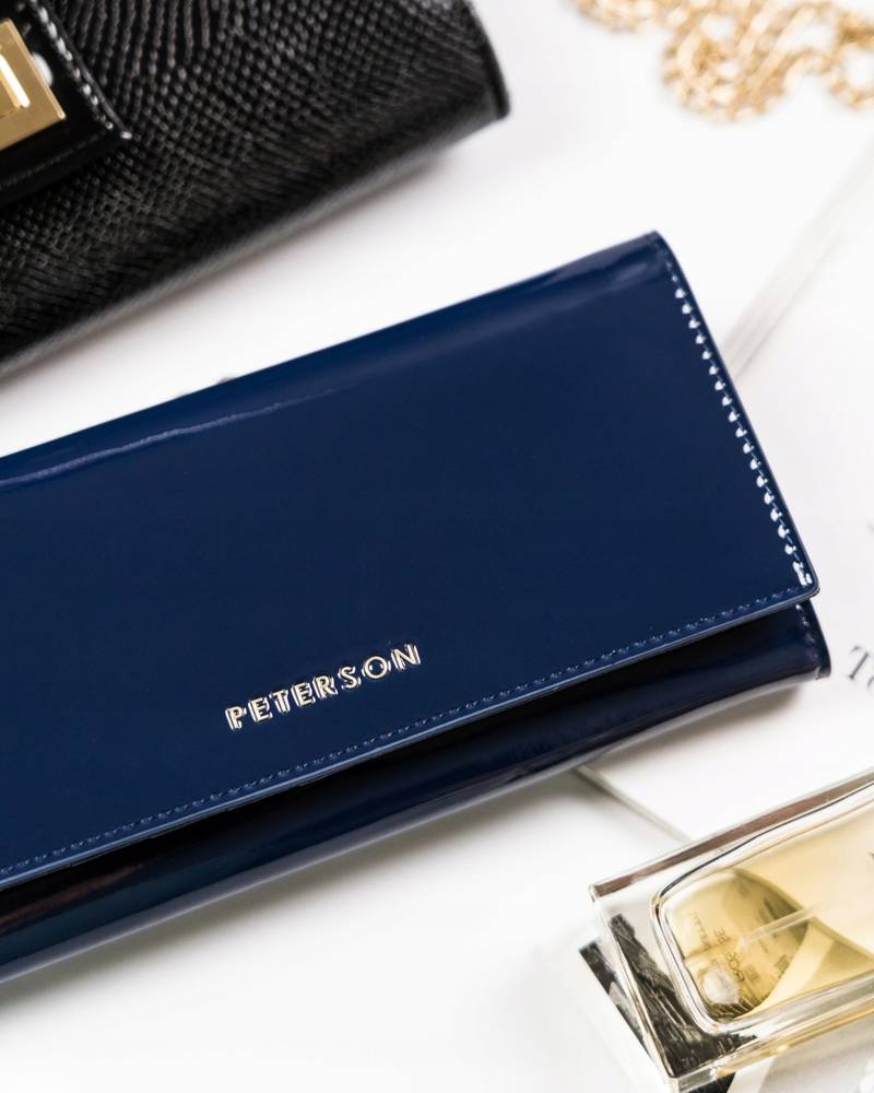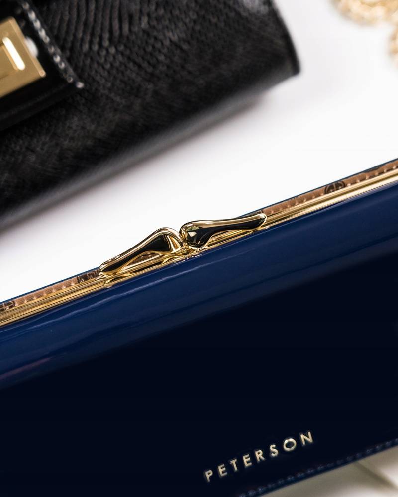 Šis elegantais sieviešu maks no Peterson kolekcijas ir izgatavots no augstas kvalitātes īstas ādas. Tumši zilā krāsa piešķir tam ekskluzivitāti un stilu. Vidēja izmēra maks ir lieliski piemērots ikdienas lietošanai, un tā funkcionalitāte ļaus ērti uzglabāt gan kartes, gan monētas.