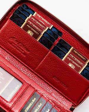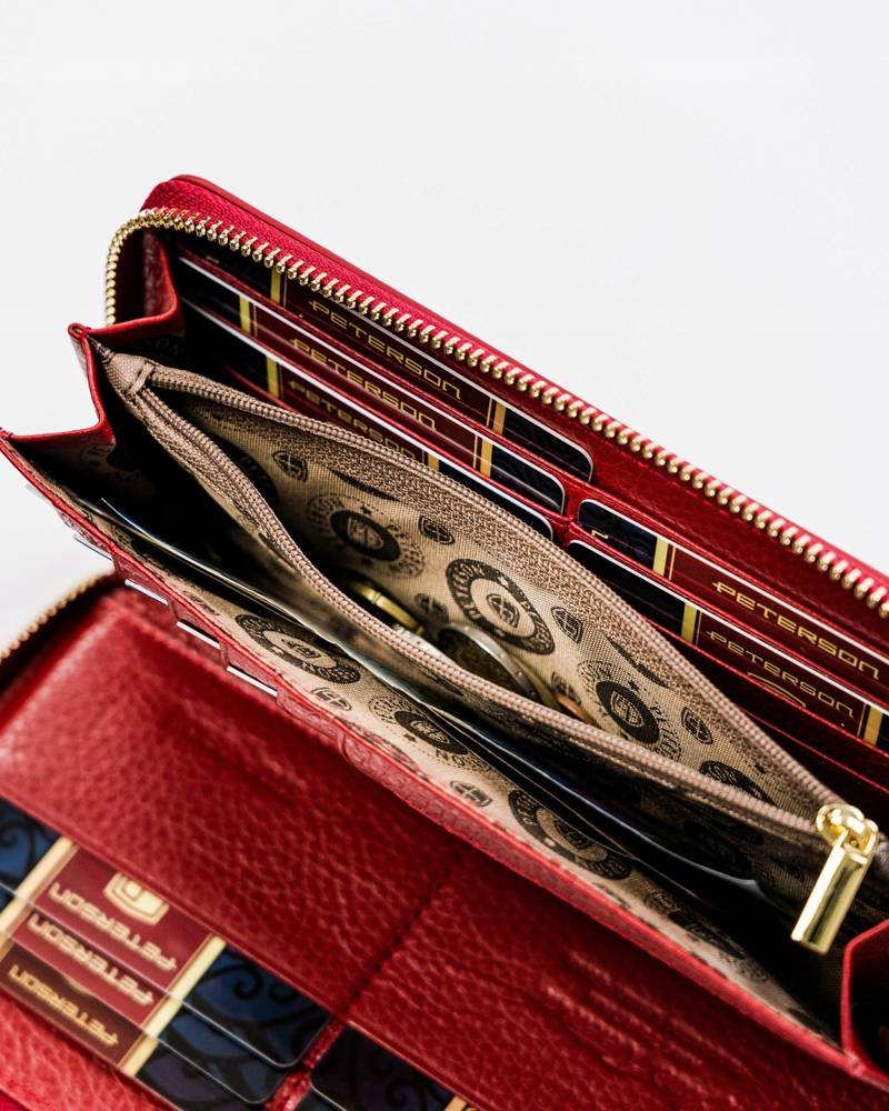 Šis elegantais sieviešu maks no Peterson kolekcijas ir izgatavots no augstas kvalitātes īstas ādas. Spilgti sarkanā krāsa piešķir tam izsmalcinātību, un īpaši lielais izmērs nodrošina, ka viss nepieciešamais atrodas vienuviet. Ar vairāk nekā 10 karšu nodalījumiem un atsevišķu nodalījumu monētām šis maks ir praktisks un ērts ikdienas lietošanai.