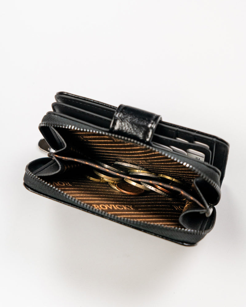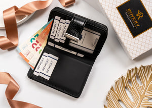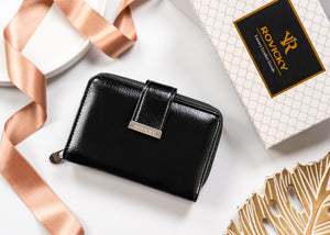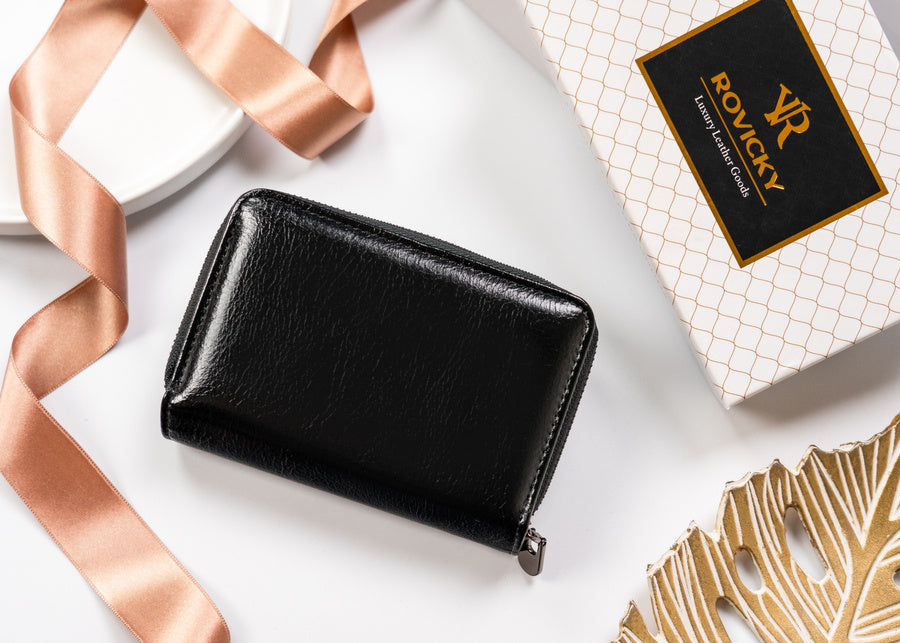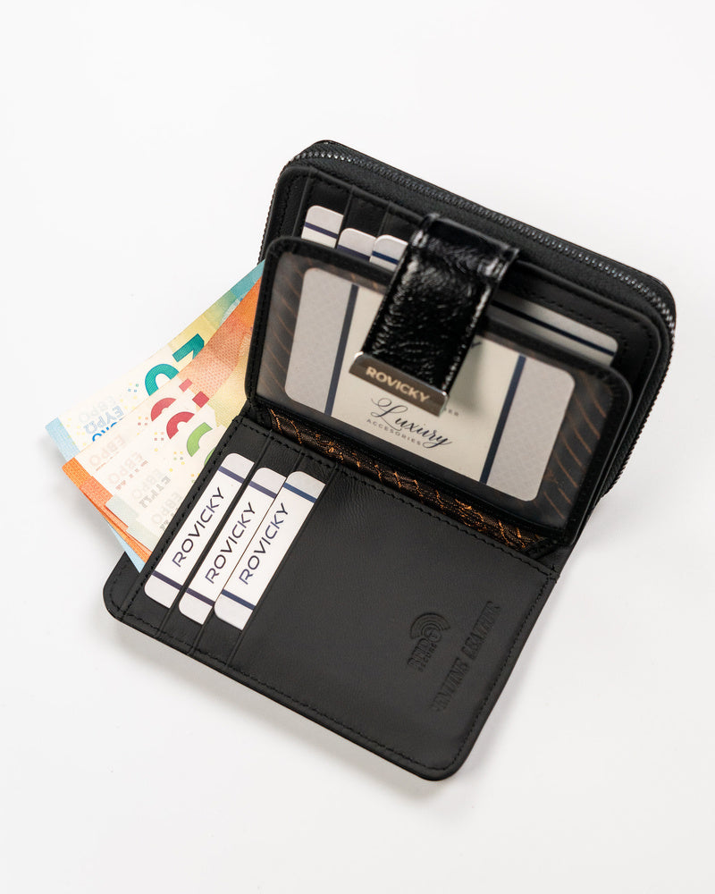 Šis elegantais un funkcionālais sieviešu maks Rovicky L102 ir lieliska izvēle tiem, kas meklē kvalitāti un stilu. Izgatavots no īstas ādas, tas nodrošina izturību un uzticamību. Melnā krāsa nodrošina daudzpusību, tāpēc maks lieliski piestāvēs jebkuram apģērbam. Vidēja izmēra maks ir ērti nēsājams katru dienu, un RFID aizsardzība palīdzēs aizsargāt jūsu kartes no nevēlamas skenēšanas. Ar 6-10 karšu nodalījumiem šis maks nodrošina pietiekami daudz vietas visām jūsu nepieciešamajām lietām.