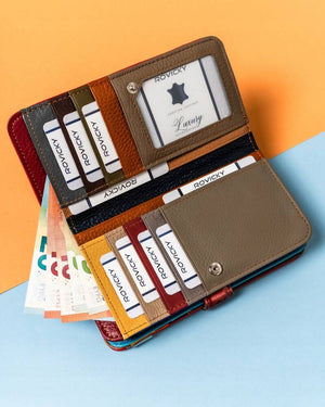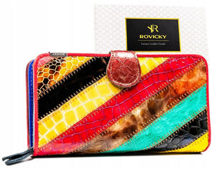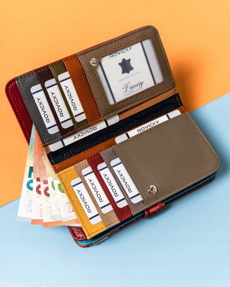 Šis sieviešu maks Rovicky L130 ir lieliska izvēle tiem, kas novērtē kvalitāti un stilu. Izgatavots no īstas ādas, tas ir izturīgs un elegants. Daudzkrāsainais izskats piešķir unikalitāti, un lielais izmērs nodrošina, ka jums būs pietiekami daudz vietas visām jūsu mantām. Lai gan makam nav RFID aizsardzības, tas piedāvā vairāk nekā 15 karšu nodalījumus, lai jūs varētu ērti uzglabāt visas savas kartes. Tā izmēri - 18,5 cm x 10 cm x 4 cm - ļauj to viegli ievietot rokassomiņā vai mugursomā.