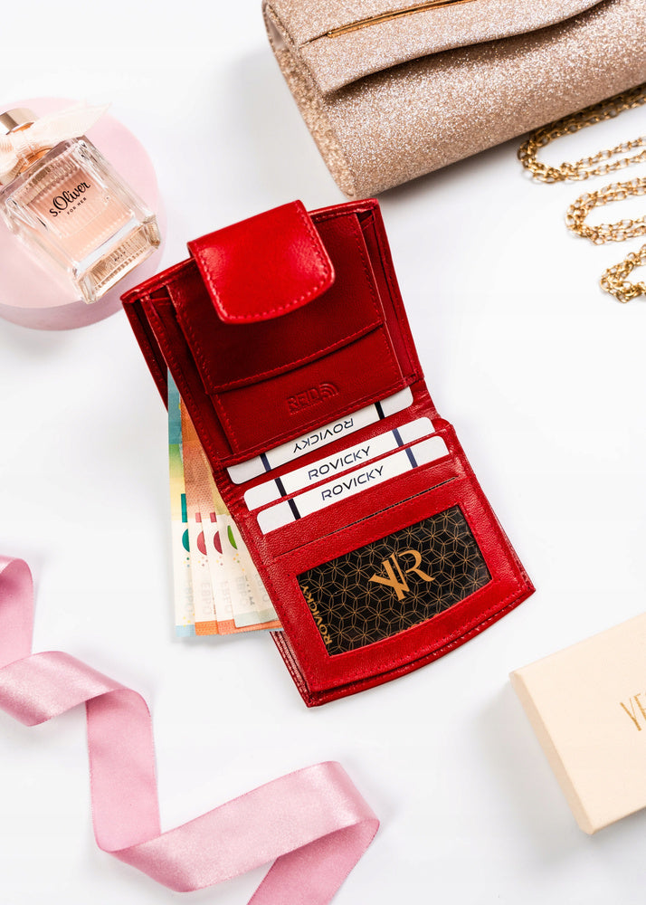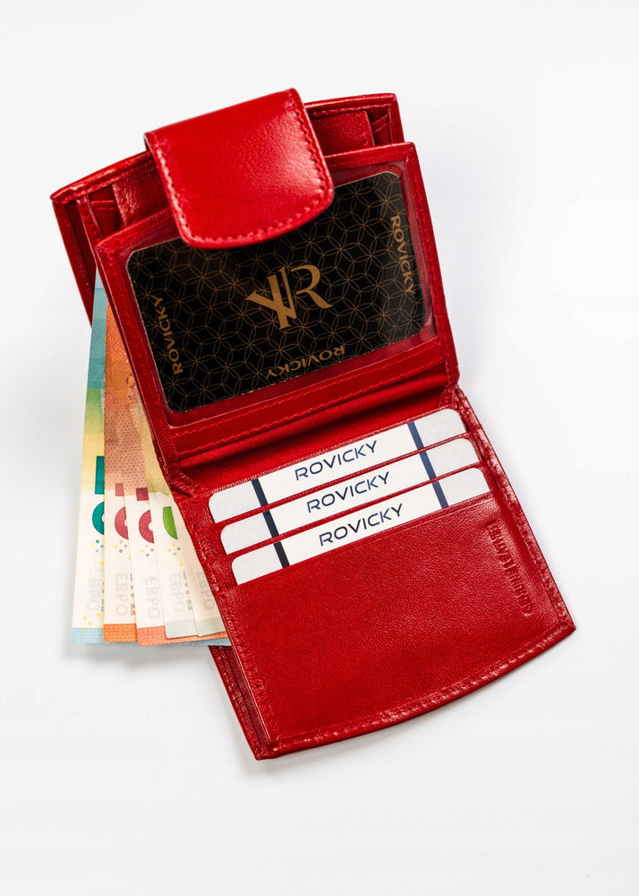 Šis elegantais un kompaktais sieviešu maks Rovicky L138 ir lieliska izvēle tiem, kas novērtē kvalitāti un funkcionalitāti. Izgatavots no īstas ādas, tas ne tikai izskatās grezni, bet arī ir izturīgs. Sarkanā krāsa piešķir stilu, un mazais izmērs padara to ērtu nēsāšanai katru dienu. Makam ir RFID aizsardzība, kas nodrošina jūsu karšu drošību. Ar 6-10 karšu nodalījumiem tas lieliski atbildīs visām jūsu vajadzībām. Izmēri 10,5 cm x 10 cm x 2,5 cm ļauj to viegli ievietot jebkurā rokassomiņā.
