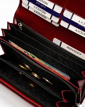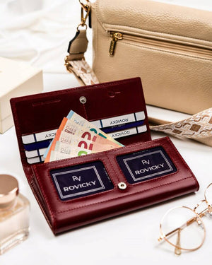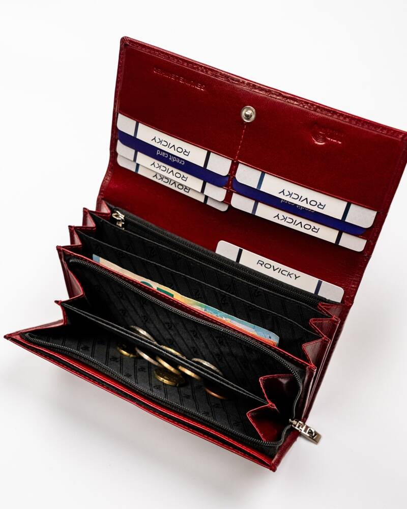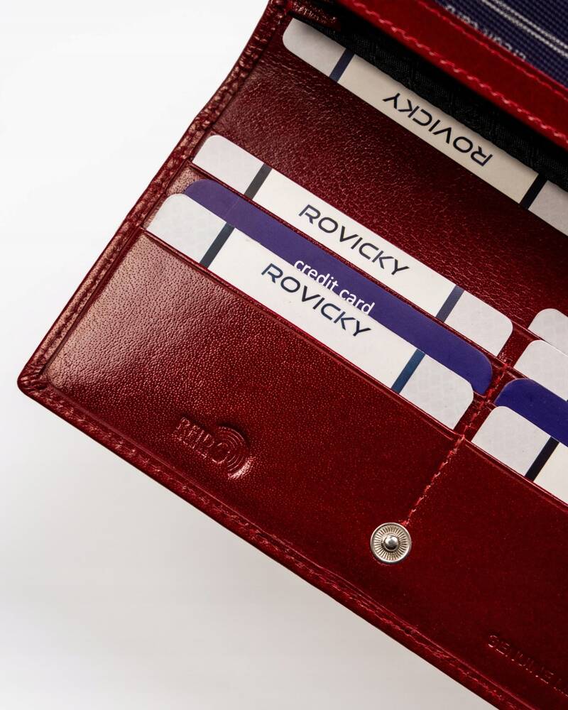 Šis elegantais un funkcionālais sieviešu maks no Rovicky ir izgatavots no augstas kvalitātes īstas ādas. Sarkanā krāsa piešķir tam atšķirību un stilu, savukārt lielais izmērs nodrošina pietiekami daudz vietas visām jūsu mantām. Makam ir RFID aizsardzība, kas palīdz aizsargāt jūsu kartes no nevēlamas skenēšanas. Ar 6-10 karšu nodalījumiem šis maks ir lieliska izvēle ikdienas lietošanai.