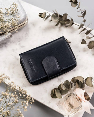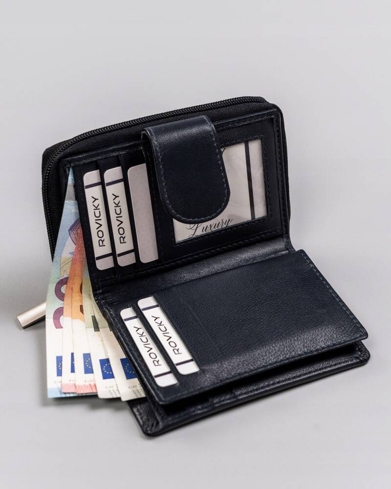 Šis elegantais un kompaktais sieviešu maks no Rovicky ir izgatavots no augstas kvalitātes īstas ādas. Tumši zilā krāsa piešķir tam ekskluzivitāti un stilu. Maks ir maza izmēra, bet ietilpīgs, ar 6-10 karšu nodalījumiem, padarot to ideāli piemērotu ikdienas lietošanai. Turklāt tam ir RFID aizsardzība, kas nodrošina jūsu karšu drošību. Tā izmēri ir 12,5 cm x 9 cm x 2,5 cm, tāpēc tas viegli iederēsies jebkurā rokassomiņā.