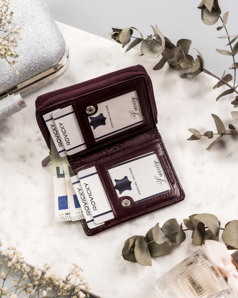 Šis elegantais un kompaktais sieviešu maks Rovicky L19 ir lieliska izvēle tiem, kas novērtē kvalitāti un stilu. Izgatavots no īstas ādas, tas nodrošina izturību un uzticamību. Violetā krāsa piešķir ekskluzivitāti, un mazais izmērs padara to ērtu nēsāšanai katru dienu. Makam ir RFID aizsardzība, kas palīdz aizsargāt jūsu kartes no nevēlamas skenēšanas. Ar 6-10 karšu nodalījumiem šis maks ir praktisks un funkcionāls.