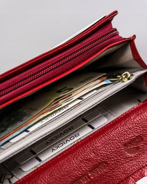 Šis elegantais un funkcionālais sieviešu maks Rovicky L44 ir lieliska izvēle tiem, kas meklē kvalitāti un stilu. Izgatavots no īstas ādas, tas ne tikai izskatās grezni, bet arī ir izturīgs. Sarkanā krāsa piešķir ekskluzivitāti, un lielais izmērs nodrošina, ka jums būs pietiekami daudz vietas visām jūsu mantām. Ar vairāk nekā 10 karšu nodalījumiem un RFID aizsardzību jūsu personas dati būs drošībā. Izmēri 10 cm x 19 cm x 3,5 cm ļauj ērti uzglabāt maku rokassomiņā vai kabatā.