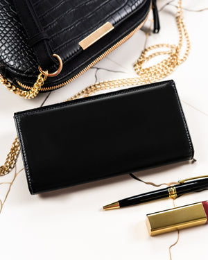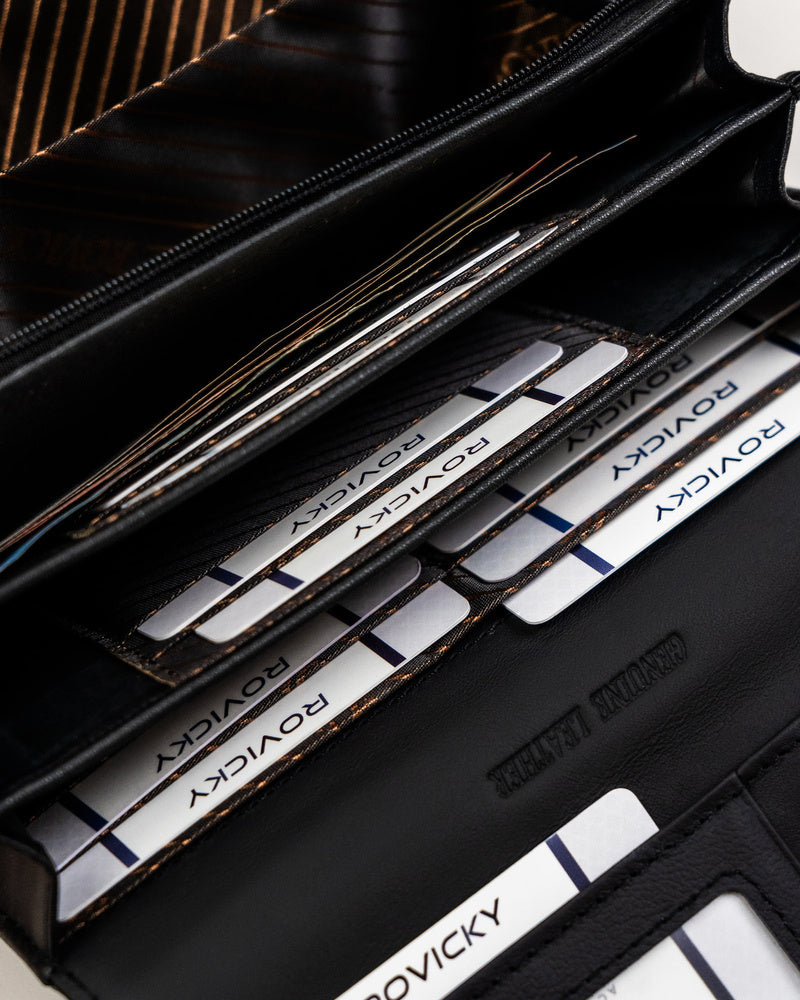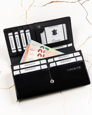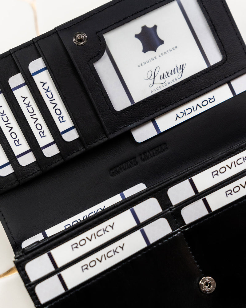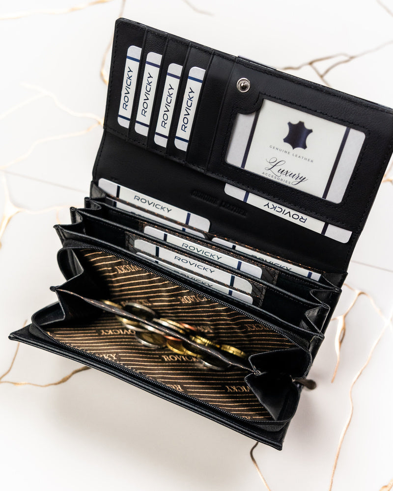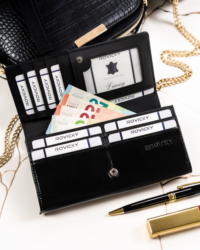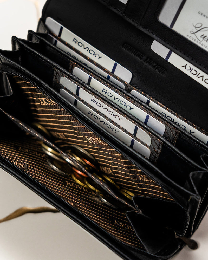 Šis elegantais melnais maks, kas izgatavots no īstas ādas, ir lieliska izvēle sievietēm, kuras novērtē kvalitāti un funkcionalitāti. Pateicoties lielajam izmēram un daudzajām karšu nodalījumiem, tas ir ideāli piemērots ikdienas lietošanai.