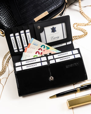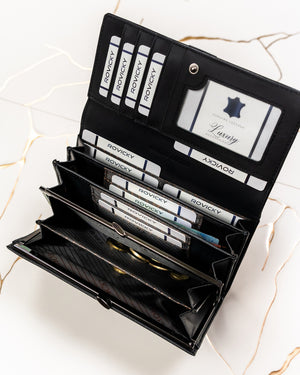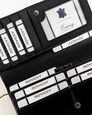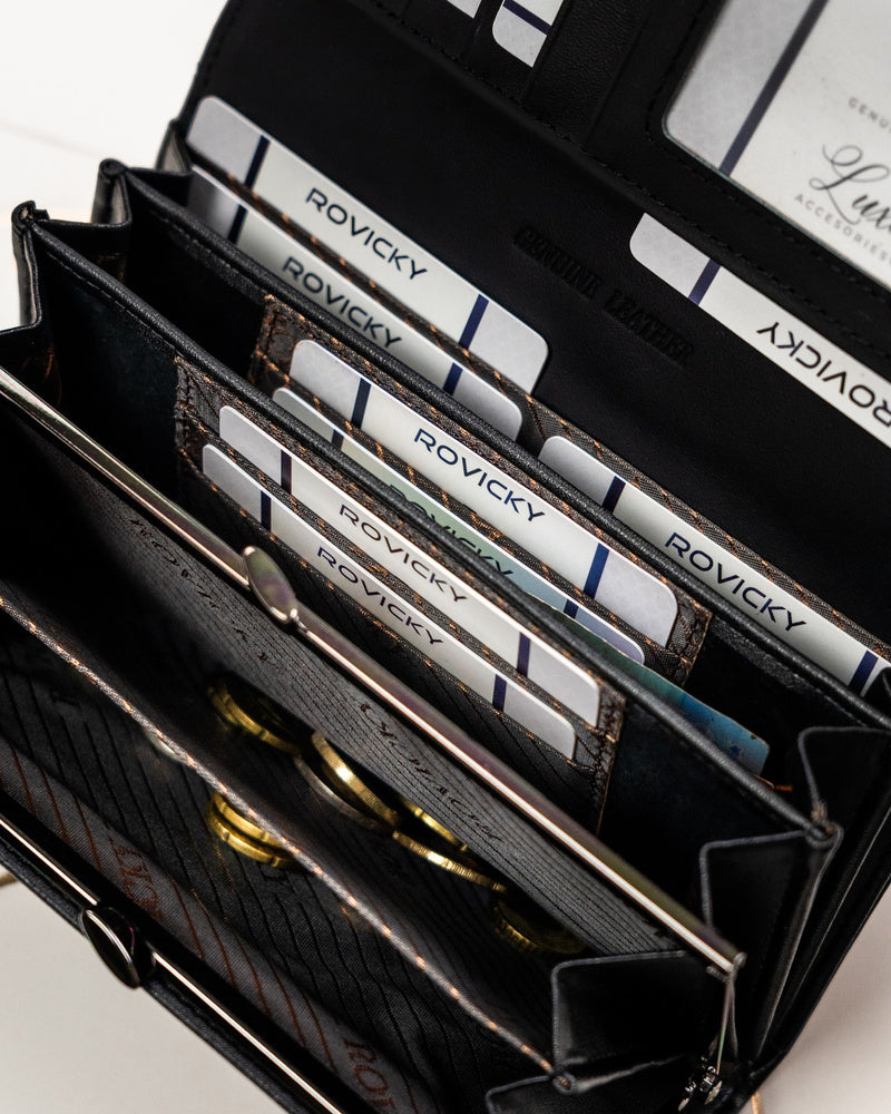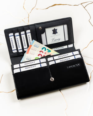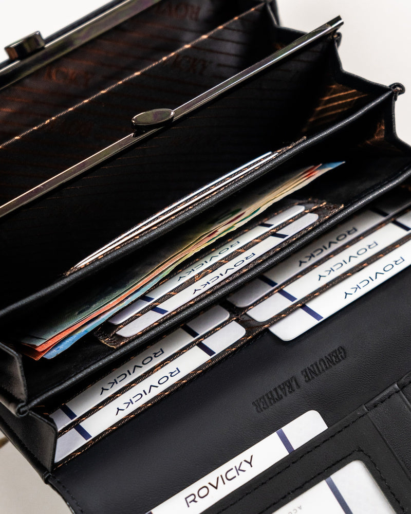 Šis elegantais un ietilpīgais maks ir lieliski piemērots sievietēm, kuras novērtē kvalitāti un funkcionalitāti. Izgatavots no īstas ādas, tas nodrošina izturību un stilīgu izskatu. Melnā krāsa nodrošina daudzpusību, tāpēc maks viegli pieskaņosies dažādiem apģērba stiliem. Lai gan tam nav RFID aizsardzības, tam ir liels skaits karšu nodalījumu, kas ļauj ērti uzglabāt visas nepieciešamās kartes. Pateicoties lielajam izmēram, šis maks ir praktiska izvēle ikdienas lietošanai.