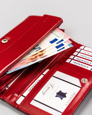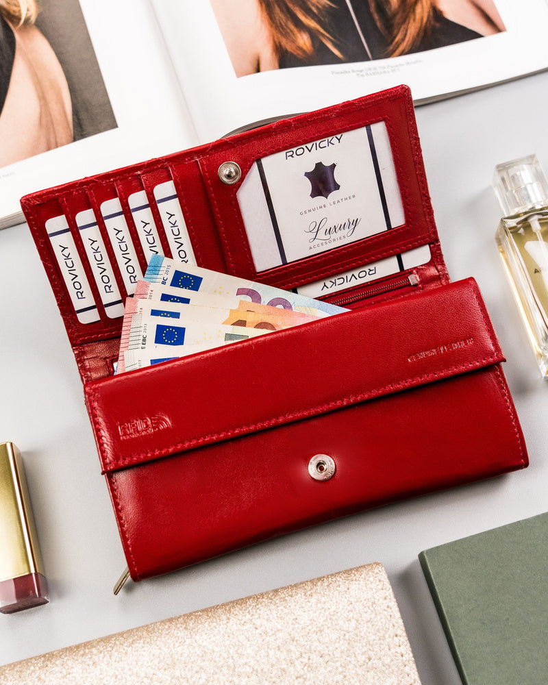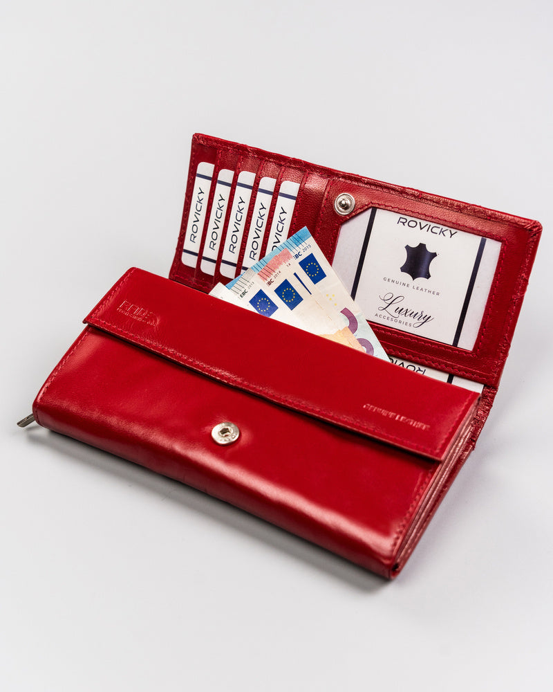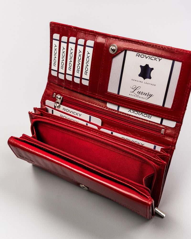 Šis elegantais un funkcionālais sieviešu maks Rovicky L9 ir lieliska izvēle tiem, kas meklē kvalitāti un stilu. Izgatavots no īstas ādas, tas ne tikai izskatās grezni, bet arī ir izturīgs. Sarkanā krāsa piešķir ekskluzivitāti, un lielais izmērs nodrošina, ka viss nepieciešamais atradīsies vienuviet. Ar 6-10 karšu nodalījumiem un RFID aizsardzību jūsu personas dati būs drošībā. Ideāla izvēle ikdienas lietošanai vai īpašiem gadījumiem.