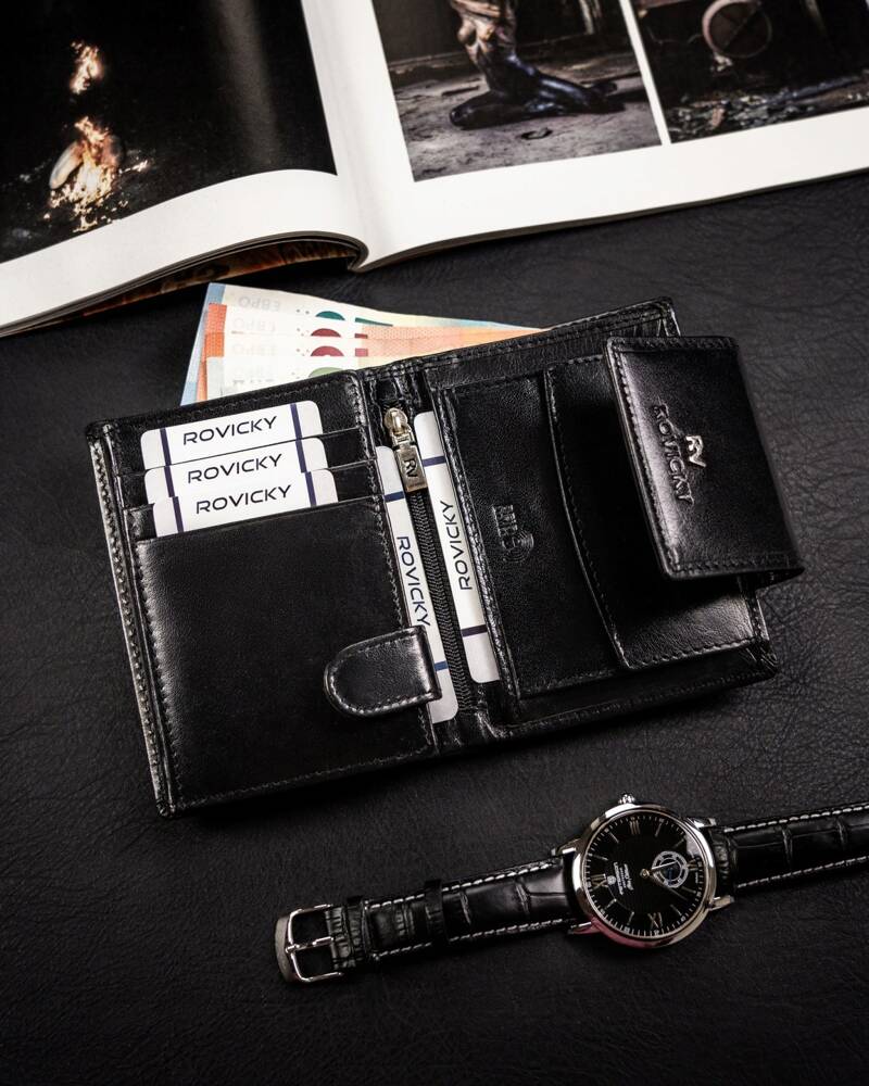 Šis elegantais un funkcionālais sieviešu maks no Rovicky ir izgatavots no augstas kvalitātes īstas ādas. Melnā krāsa nodrošina klasisku un daudzpusīgu stilu, kas piemērots jebkuram gadījumam. Vidēja izmēra maks ir ērts ikdienas lietošanai, un RFID aizsardzība nodrošina jūsu karšu drošību. Ar 6-10 karšu nodalījumiem tas ir lieliski piemērots gan ikdienas vajadzībām, gan īpašiem gadījumiem.