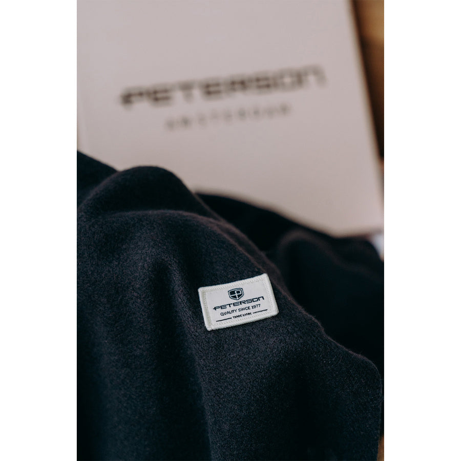 Stilīgs dizains: Peterson® šallei ir minimālistisks, vienmērīgs melns raksts, kas piešķir tai mūžīgu šarmu. Materiāla mīkstā tekstūra padara to ārkārtīgi elegantu un viegli kombinējamu ar dažādiem garderobes elementiem.