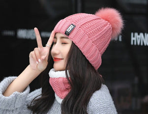 Sieviešu cepures un šalles komplekts SD68 rozā