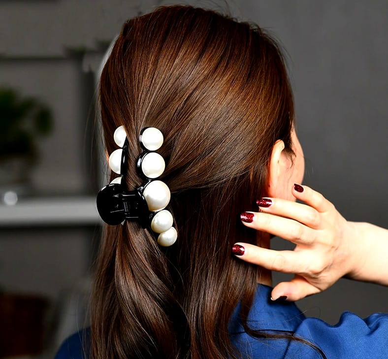 - Izmērs un funkcionalitāte: 10 cm garā sprādze ir pietiekami liela, lai efektīvi noturētu matus, vienlaikus piešķirot frizūrai eleganci.