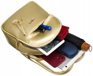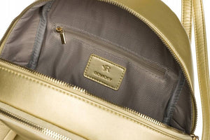 Rovicky sieviešu mugursoma, izgatavota no mākslīgās ādas, zelta krāsā, lieliski piemērota ikdienas lietošanai.