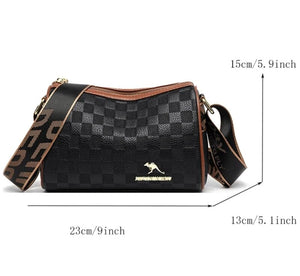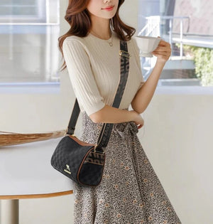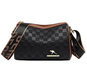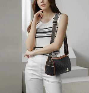 Brūnas ādas elementi piešķir somai elegantu izskatu
