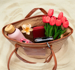 Šī elegantā un praktiskā Bad&Bags rokassoma ir lieliska izvēle vasaras sezonai. Izgatavota no augstas kvalitātes austa sintētiska materiāla, tā ir dabīgā/bēšā krāsā ar brūnām detaļām, kas piešķir tai unikālu stilu.