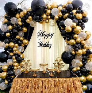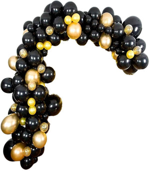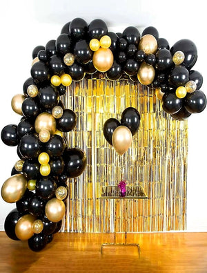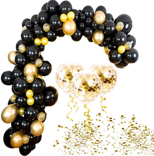 Šis 80 melnu un zelta balonu komplekts ir lieliski piemērots elegantu dekorāciju veidošanai. Komplektā ietilpst dažādu izmēru baloni, kurus var piepildīt ar parastu gaisu vai hēliju vēl iespaidīgākam efektam.
