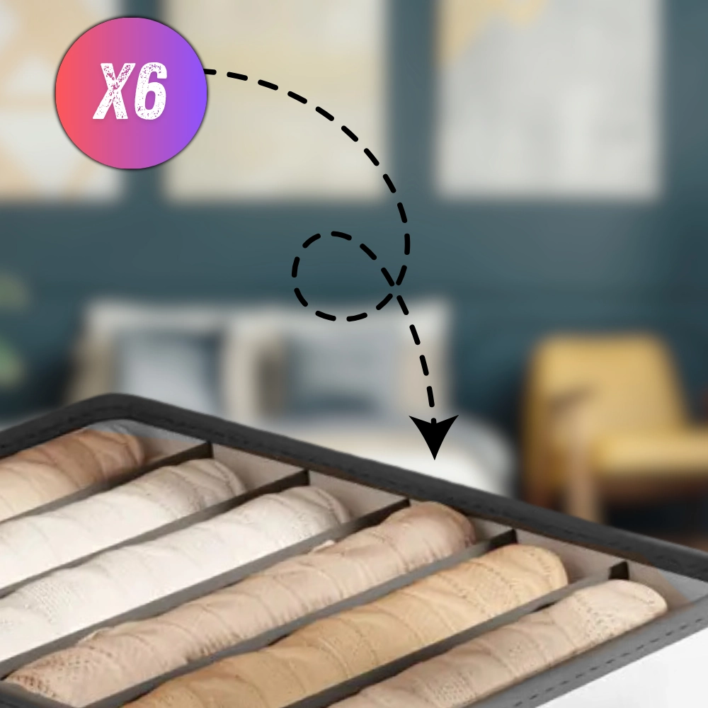 Šis kompaktais atvilktņu organizators ar 6 nodalījumiem ir lielisks risinājums, lai sakārtotu savu skapi vai atvilktnes. Tas nodrošina ērtu piekļuvi priekšmetiem un ir ideāli piemērots džinsu, džemperu, dvieļu un citu tekstilizstrādājumu glabāšanai.