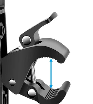 - 360 grādu rotējošā skava ļauj viegli piestiprināt stiprinājumu pie stūres, apakšējās caurules vai segla.