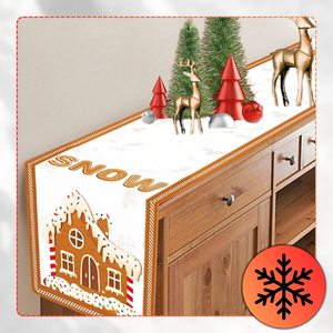 Šis elegantais baltais galdauts ar piparkūku mājiņas motīvu lieliski noderēs jūsu Ziemassvētku galda dekorēšanai. Tā smalkais dizains piešķirs svētku atmosfēru un palīdzēs radīt mājīgu vidi.