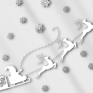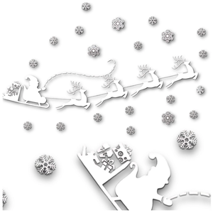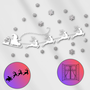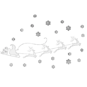 Šī Ziemassvētku uzlīme logam lieliski atspoguļo svētku noskaņu, attēlojot Ziemassvētku vecīti kamanās ar ziemeļbriežiem un sniegpārslām. Tā ir lieliska izvēle, lai mājās radītu mājīgu un svētku atmosfēru.