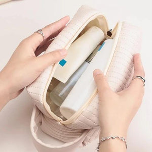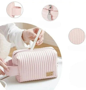 • Ērta pārnēsāšana: Rokturis sānos padara kosmētikas somiņu viegli pārnēsājamu, padarot to ideāli piemērotu ceļojumiem.