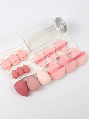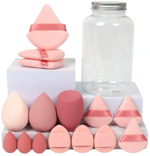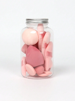 Visi sūklīši un spilventiņi ir ērti iepakoti stikla burciņā, kas ne tikai aizsargā, bet arī piešķir jūsu kosmētikas kolekcijai stilīgu izskatu.