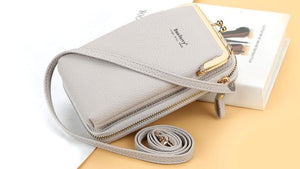 Šis elegantais mini maks un somiņa ir ideāls risinājums sievietēm, kuras vēlas visu glabāt vienuviet. Tas ir piemērots lielākajai daļai viedtālruņu, piemēram, iPhone, Samsung, Xiaomi, Huawei, Sony, Panasonic, LG un Nokia.