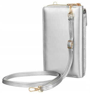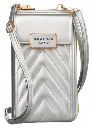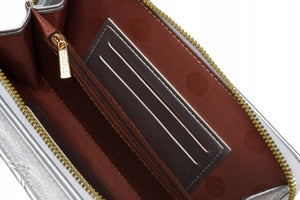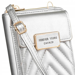Liela 4U CAVALDI sudraba krāsas sieviešu rokassoma no organiskās ādas ar rāvējslēdzēju.