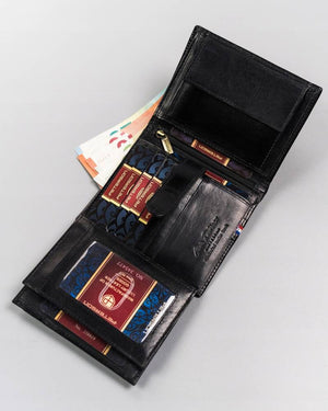 Šis elegantais un funkcionālais maks ir lieliska izvēle vīriešiem, kuri novērtē kvalitāti un drošību. Izgatavots no īstas ādas, tas ne tikai izskatās grezni, bet arī ir izturīgs. Melnā krāsa nodrošina daudzpusību, padarot maku ideāli piemērotu jebkuram gadījumam. Pateicoties lielajam izmēram un vairāk nekā 10 karšu nodalījumiem, tas apmierinās visas jūsu vajadzības. Turklāt integrētā RFID aizsardzība nodrošina jūsu karšu datu drošību.