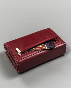 Šis elegantais sieviešu maks, kas izgatavots no īstas ādas, ir lieliska izvēle tiem, kas novērtē kvalitāti un funkcionalitāti. Bordo krāsa piešķir ekskluzivitāti, bet vidējais izmērs nodrošina ērtības ikdienas lietošanā.