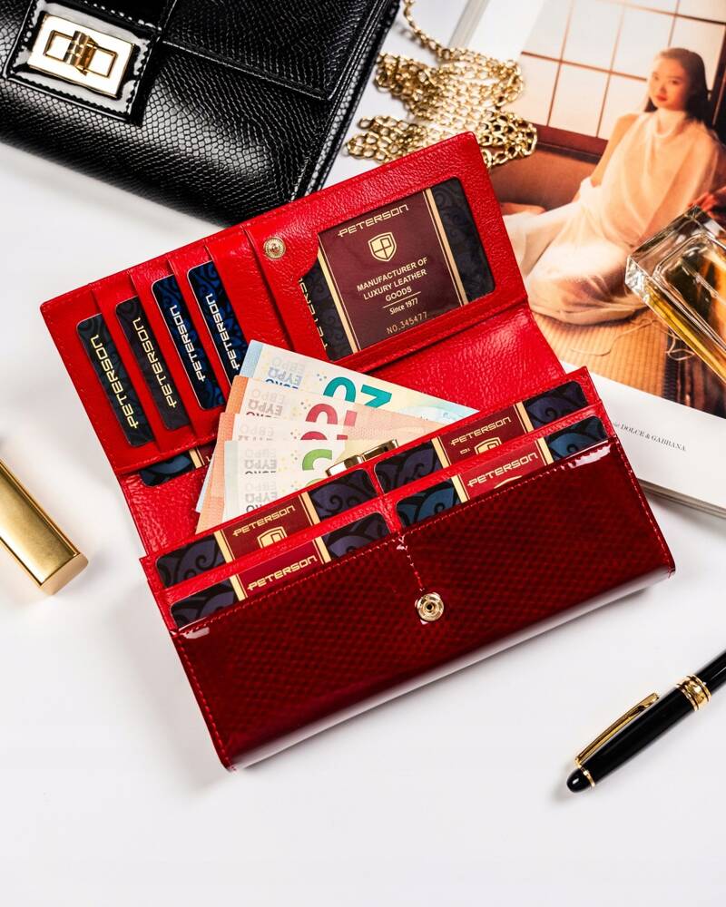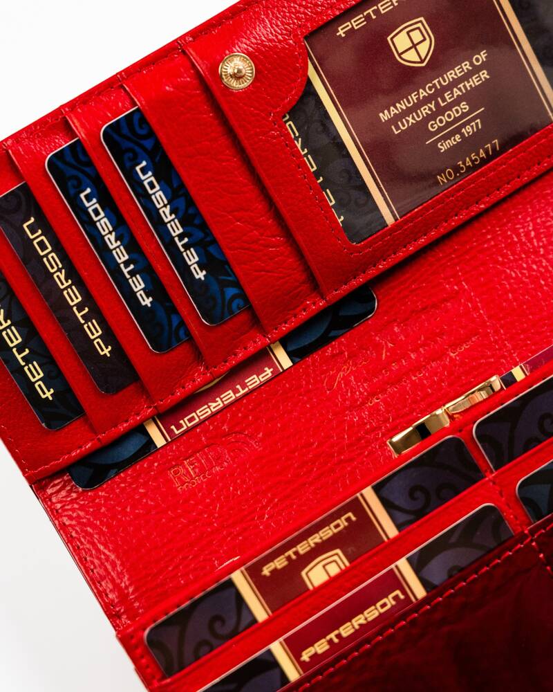 Šis elegantais un funkcionālais sieviešu maks no Peterson ir lieliska izvēle tiem, kas novērtē kvalitāti un stilu. Izgatavots no īstas ādas, tas ne tikai izskatās grezni, bet arī ir izturīgs. Sarkanā krāsa piešķir izsmalcinātību, un lielais izmērs nodrošina, ka viss nepieciešamais atrodas vienuviet.
