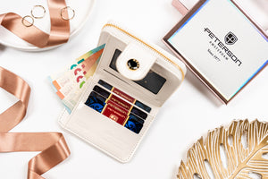 Šis elegantais sieviešu maks no Peterson kolekcijas ir lieliska izvēle tiem, kas novērtē stilu un funkcionalitāti. Izgatavots no eko ādas, tas ne tikai izskatās grezni, bet arī ir videi draudzīgs. Kompaktais izmērs ļauj ērti uzglabāt maku rokassomiņā, un pietiekams skaits karšu nodalījumu nodrošina, ka vienmēr ir vieta svarīgākajām kartēm. Monētu nodalījums nodrošina papildu ērtības ikdienas lietošanai.