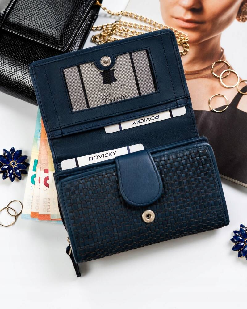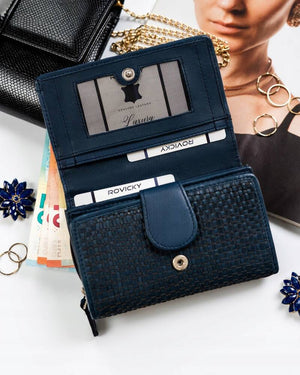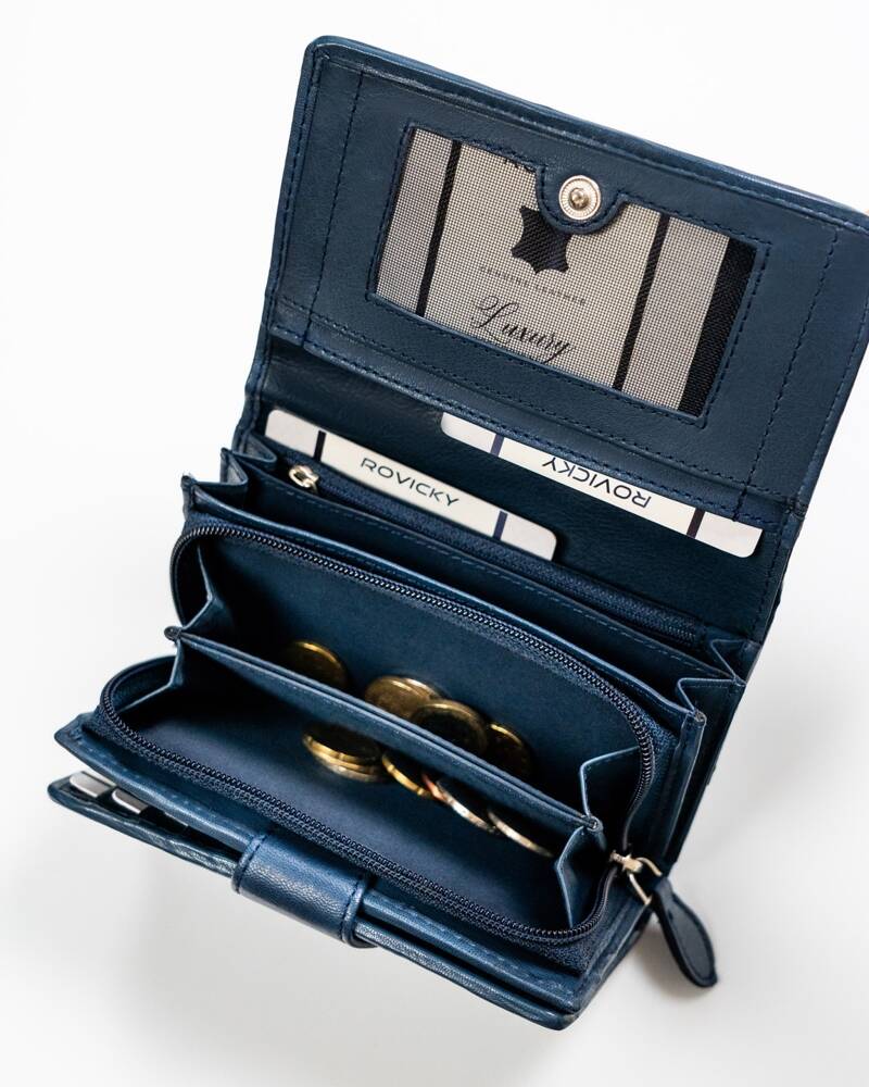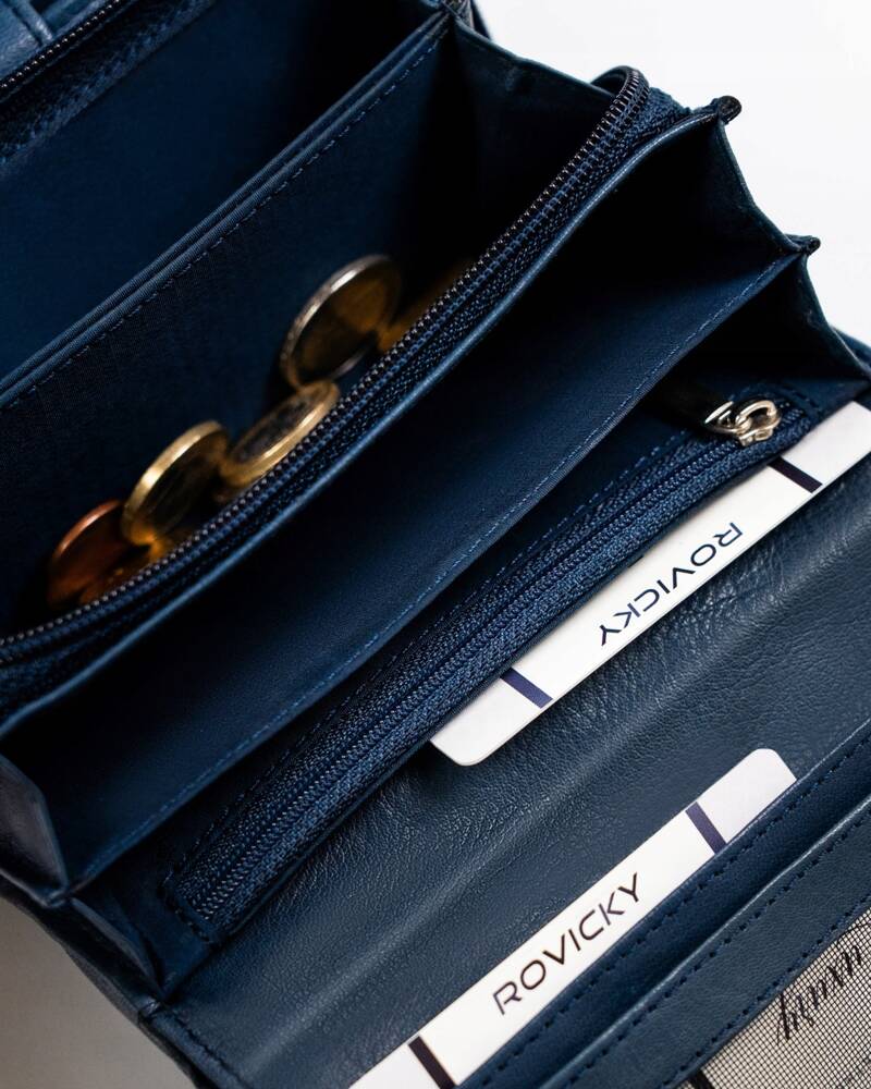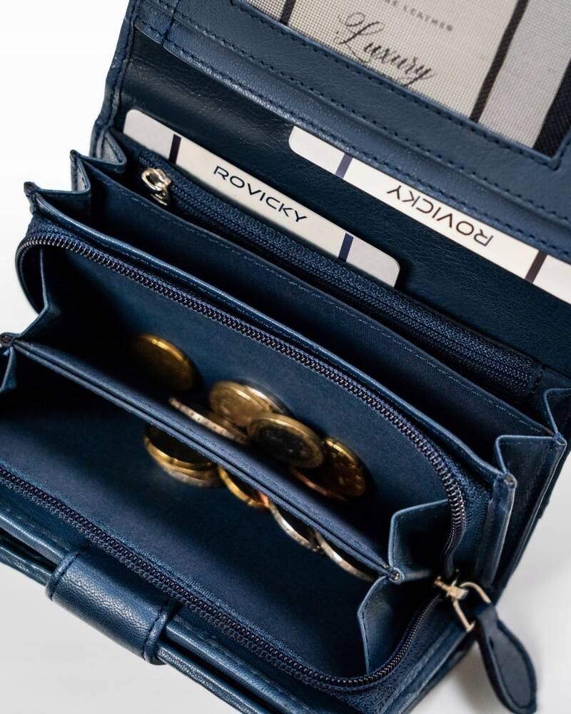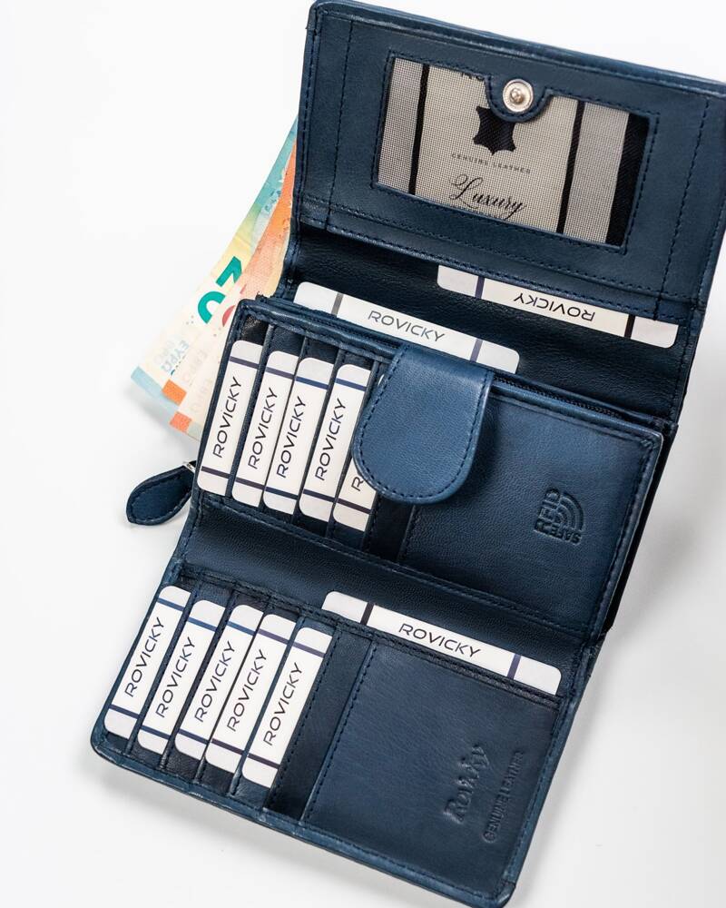 Šis elegantais un funkcionālais sieviešu maks Rovicky L116 ir lieliska izvēle tiem, kas novērtē kvalitāti un stilu. Izgatavots no īstas ādas, tas nodrošina izturību un uzticamību. Tumši zilā krāsa piešķir makam atšķirīgu izskatu, un vidējais izmērs ļauj to ērti uzglabāt rokassomiņā. Ar vairāk nekā 10 karšu nodalījumiem un RFID aizsardzību jūsu personas dati būs drošībā. Šis ir praktisks un stilīgs aksesuārs ikvienai sievietei.