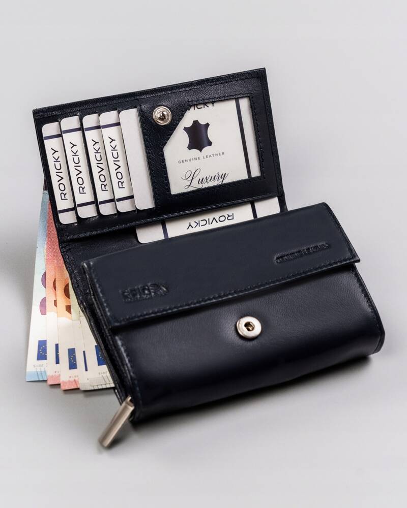 Šis elegantais sieviešu maks Rovicky L161 ir izgatavots no augstas kvalitātes īstas ādas, kas nodrošina izturību un stilīgu izskatu. Granīta krāsa piešķir modernitāti un daudzpusību, padarot to ideāli piemērotu dažādām apģērbu kombinācijām. Vidēja izmēra maks ir ērts ikdienas lietošanai, un RFID aizsardzība palīdzēs aizsargāt jūsu kartes no nevēlamas skenēšanas. Ar 6-10 karšu nodalījumiem šis maks nodrošina pietiekami daudz vietas visām jūsu nepieciešamajām lietām.
