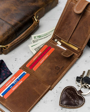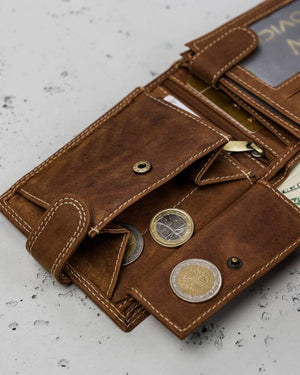 Šis vīriešu maks no Always Wild kolekcijas ir izgatavots no augstas kvalitātes īstas ādas, nodrošinot izturību un eleganci. Brūnais dizains piešķir klasisku un stilīgu izskatu. Lielais izmērs ļauj ērti uzglabāt visas nepieciešamās lietas, un RFID aizsardzība palīdz aizsargāt jūsu kartes no nevēlamas skenēšanas. Makam ir 6-10 karšu nodalījumi, padarot to ideāli piemērotu ikdienas lietošanai. Kompaktie izmēri (10 cm x 12 cm x 2,5 cm) ļauj ērti nēsāt maku kabatā vai somā.