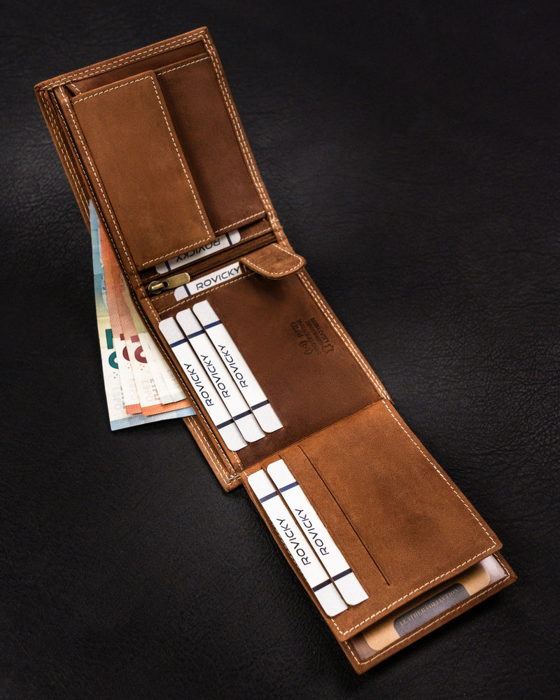 Šis elegantais un funkcionālais maks ir lieliska izvēle vīriešiem, kuri novērtē kvalitāti un stilu. Izgatavots no dabīgas zamšādas un nubuka ādas, tas nodrošina izturību un komfortu. Gaiši brūnā krāsa piešķir klasisku un daudzpusīgu izskatu, kas piemērots dažādiem gadījumiem. Lielais izmērs ļauj ērti uzglabāt visas nepieciešamās mantas, un RFID aizsardzība nodrošina jūsu karšu drošību. Ar 6-10 karšu nodalījumiem šis maks ir praktisks un ietilpīgs.