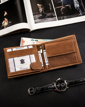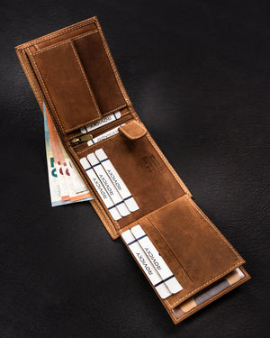 Šis vīriešu maks no Always Wild kolekcijas ir izgatavots no augstas kvalitātes dabīgas zamšādas un nubuka ādas, nodrošinot elegantu un izturīgu dizainu. Gaiši brūnā krāsa labi sader ar dažādiem stiliem, un lielais izmērs nodrošina, ka jums ir pietiekami daudz vietas visām jūsu nepieciešamajām lietām. Makam ir arī RFID aizsardzība, kas palīdz aizsargāt jūsu kartes no nevēlamas skenēšanas. Ar 6-10 karšu nodalījumiem šis maks ir praktiska un stilīga izvēle ikvienam vīrietim.