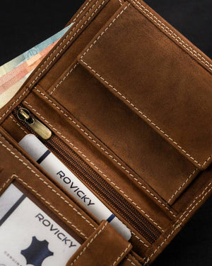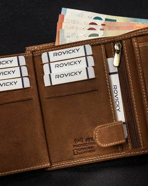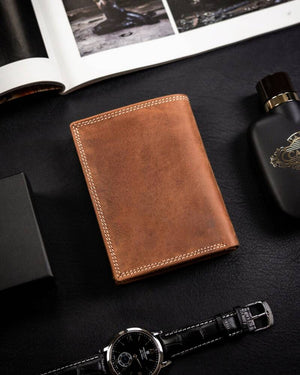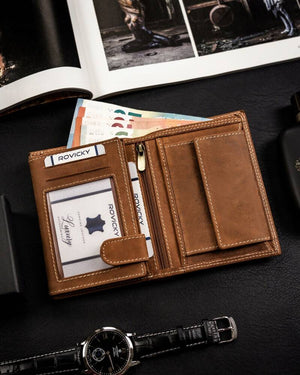 Šis elegantais un funkcionālais maks ir lieliska izvēle vīriešiem, kuri novērtē kvalitāti un drošību. Izgatavots no dabīgas zamšādas un nubuka ādas, tas ne tikai izskatās stilīgi, bet arī nodrošina izturību. Makam ir RFID aizsardzība, kas palīdz aizsargāt jūsu kartes no nevēlamas skenēšanas. Ar 6-10 karšu nodalījumiem šis maks nodrošina pietiekami daudz vietas visiem jūsu svarīgajiem dokumentiem. Tā lielais izmērs un gaiši brūnā krāsa apvieno eleganci un praktiskumu.